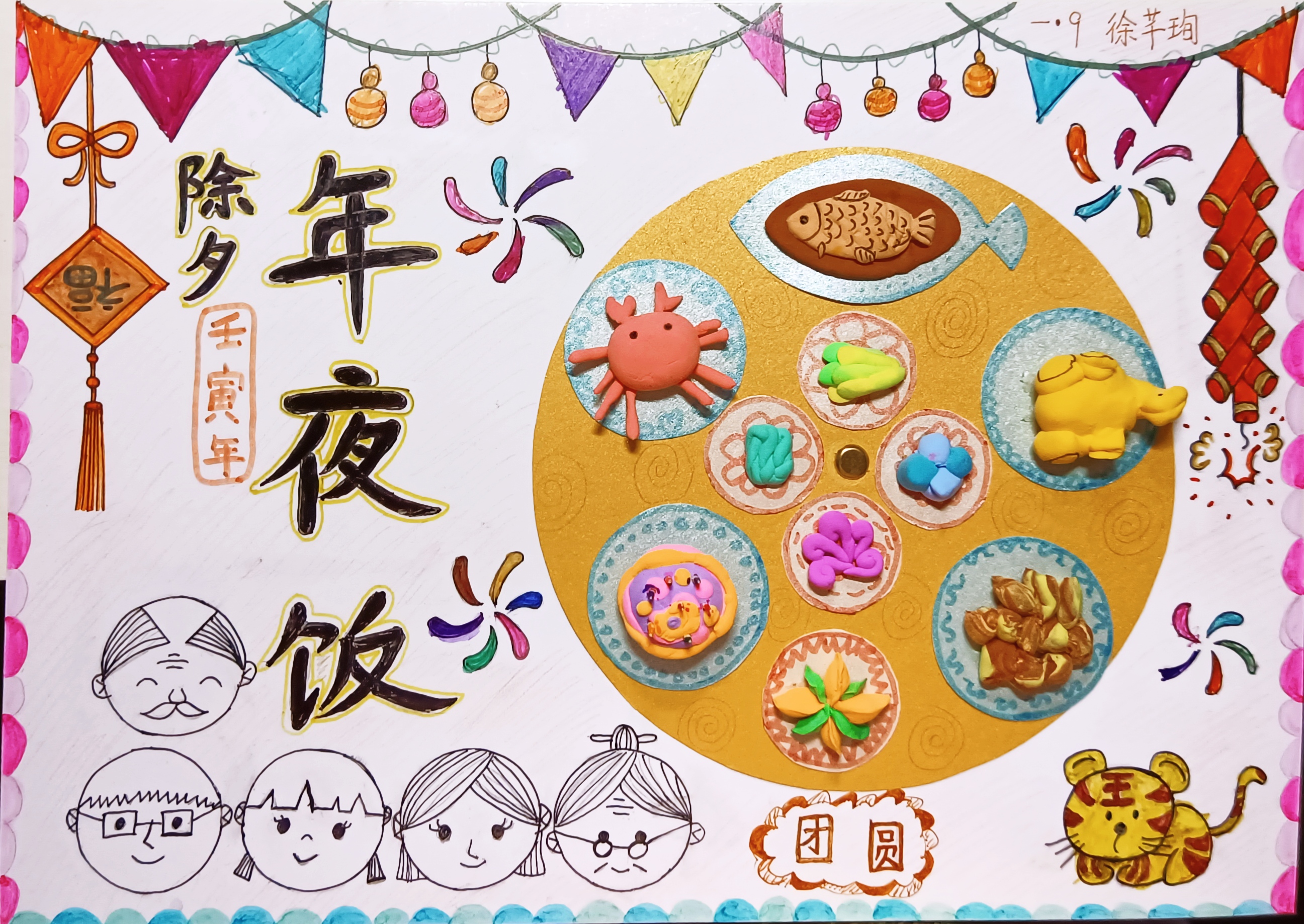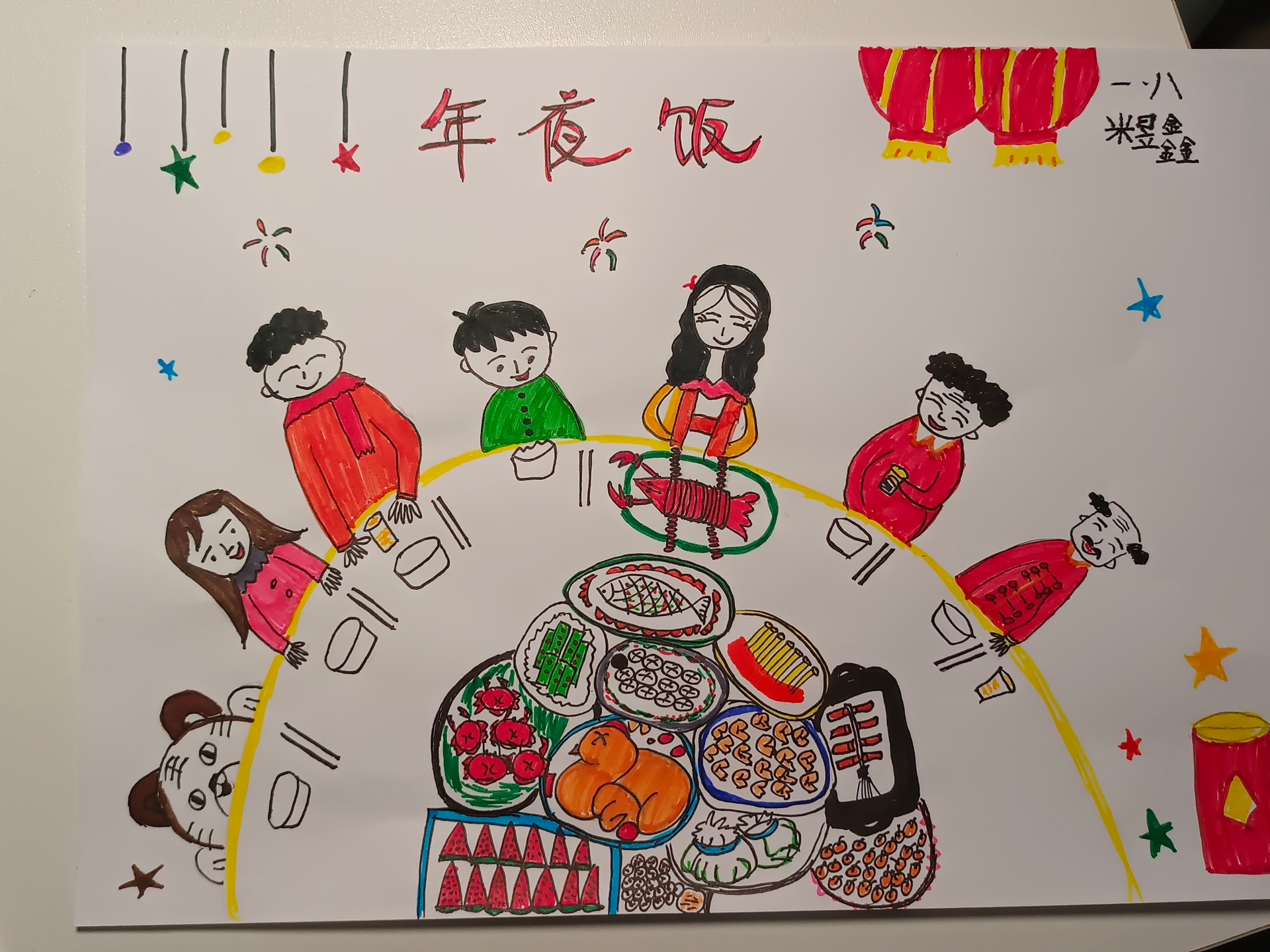 為展現(xiàn)同學們的創(chuàng)作力,傳承年俗文化,學校利用假期活動鼓勵學生用五彩的畫筆記錄下美味的年夜飯,一幅幅充滿童真童趣的作品惟妙惟肖,充分展現(xiàn)了除夕夜餐桌前的熱鬧氛圍。