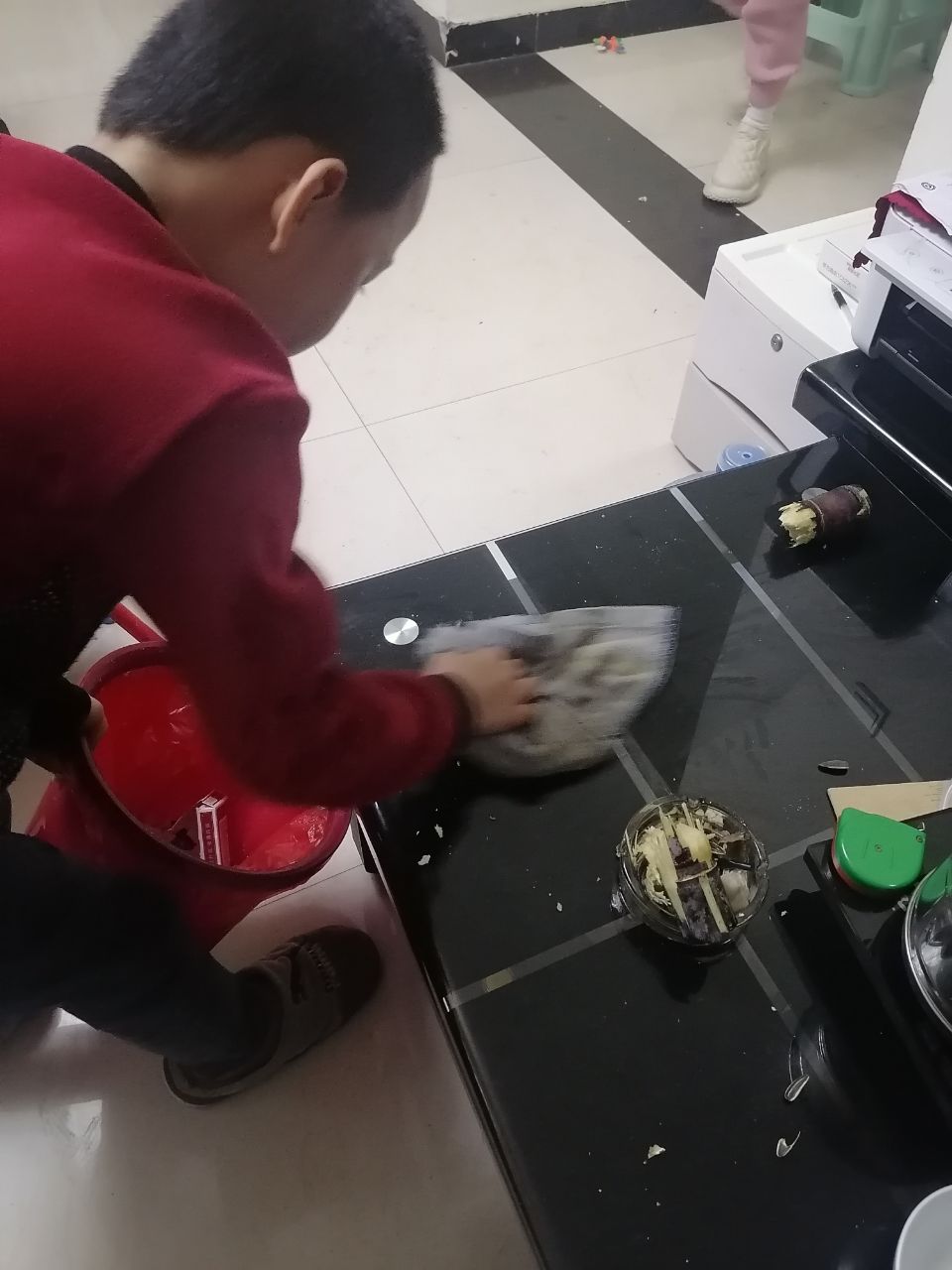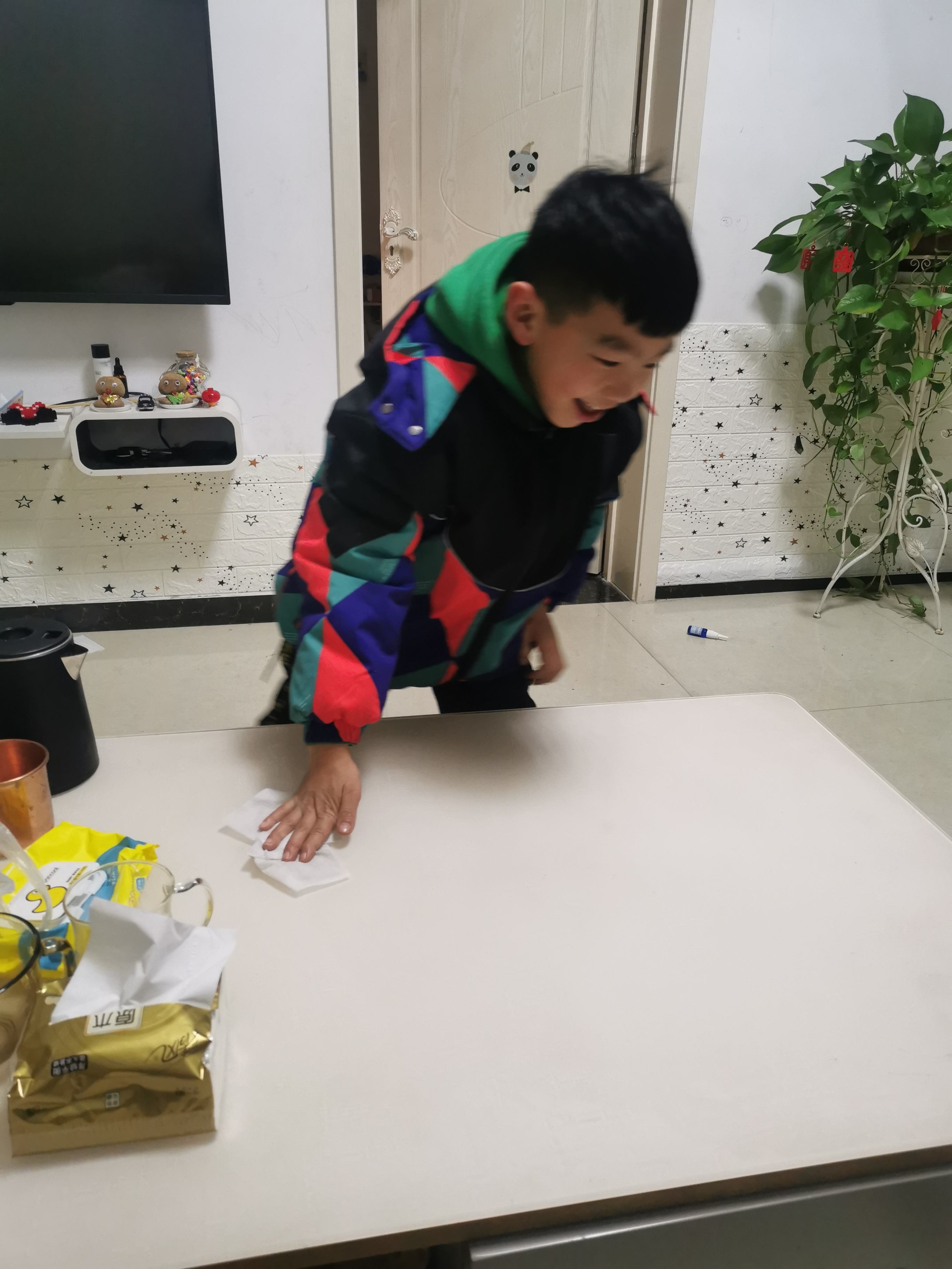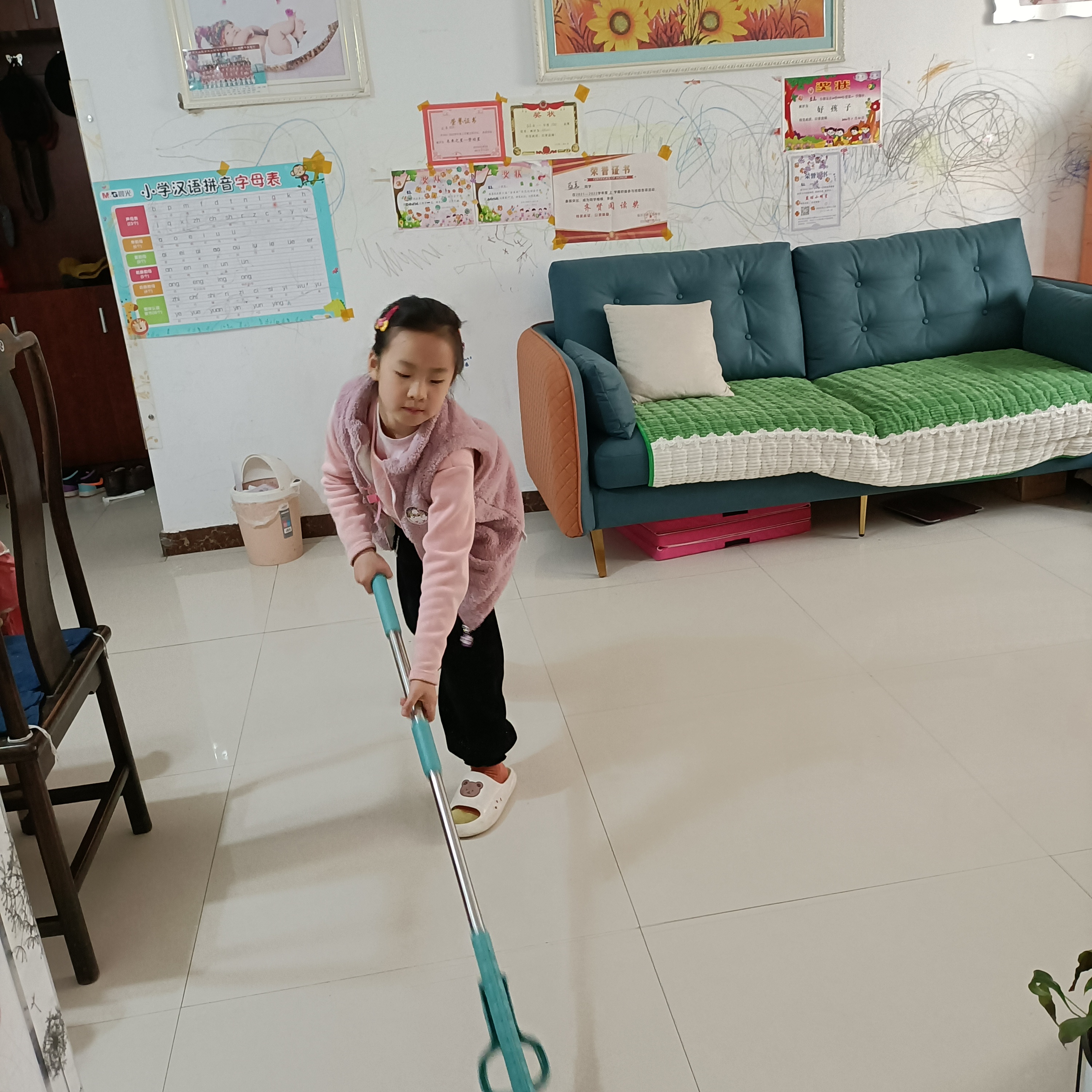 孩子們選取了自己適合的打掃項(xiàng)目,拿著抹布、掃把、拖把,在爸爸媽媽的指導(dǎo)下掃地、擦桌子、擦椅子、整理書(shū)柜、整理玩具等等,孩子們認(rèn)認(rèn)真真打掃自己的家,創(chuàng)造著自己的美麗家園。