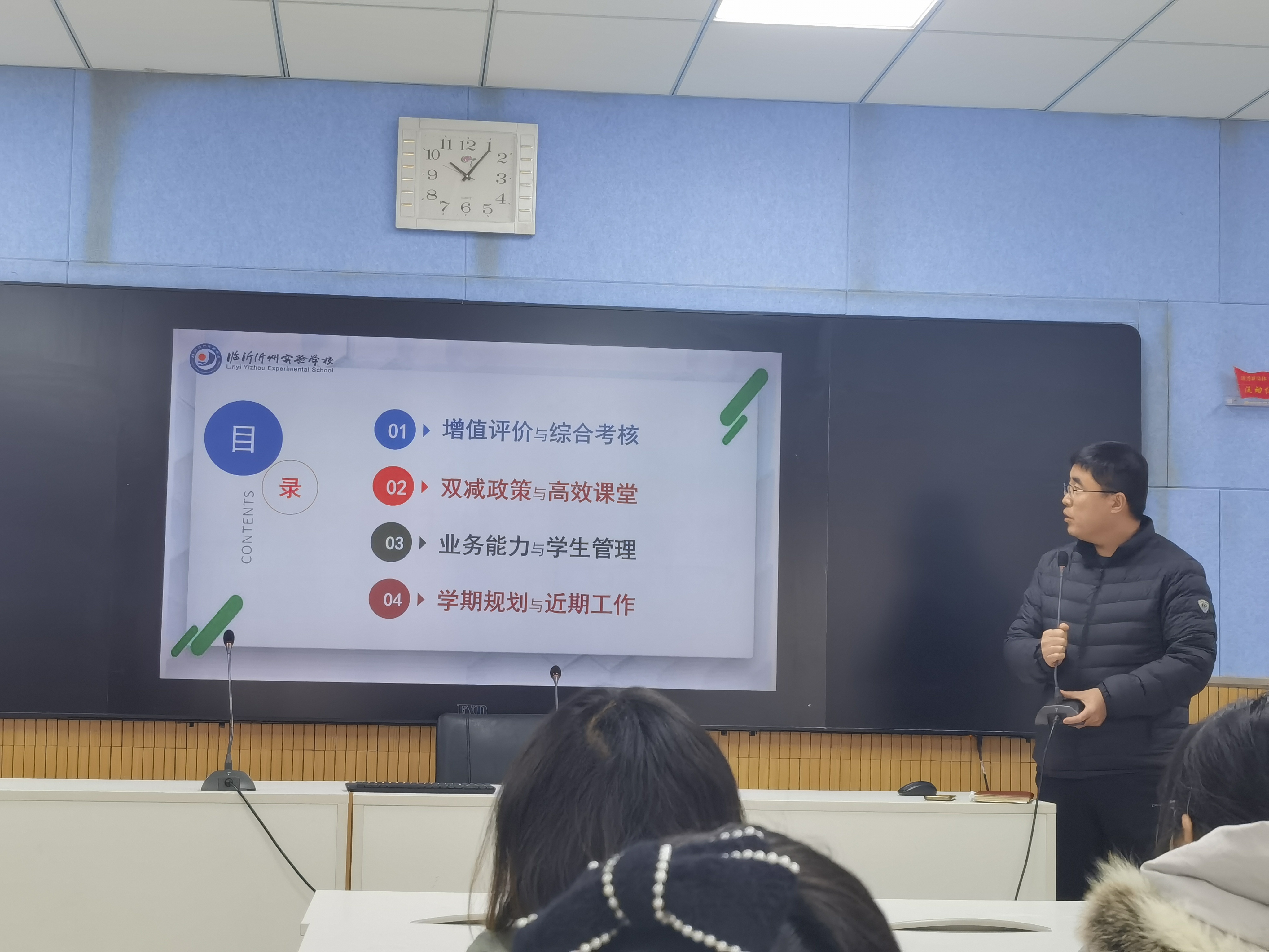 劉紀(jì)海副主任在會議中詳細(xì)闡述了增值評價與綜合考核、雙減政策與高效課堂、業(yè)務(wù)能力與學(xué)生管理、學(xué)期規(guī)劃與近期工作四個方面,會議中強調(diào):并非原本成績優(yōu)秀的班級難增值,并非成績較差的班級看不到希望,更非成績中游的班級最穩(wěn)定,每位教師都要用發(fā)展的眼光看問題。在“雙減”政策的背景下,本著為黨育人、為國育才的理念,做立德樹人、促進(jìn)學(xué)生全面發(fā)展的新時代教師。新學(xué)期,每位教師都應(yīng)加強自身學(xué)習(xí),提升專業(yè)能力,嚴(yán)抓課堂管理,塑造班風(fēng)學(xué)風(fēng)。另外,要集思廣益,豐富“家校共育”手段,切實加強家庭教育與教師工作的聯(lián)系,幫助家長了解學(xué)校教育工作,完善家庭教育理念。會議最后,年級對新學(xué)期教育教學(xué)等工作進(jìn)行了細(xì)致的分工,保證“每件事都落在實處”。