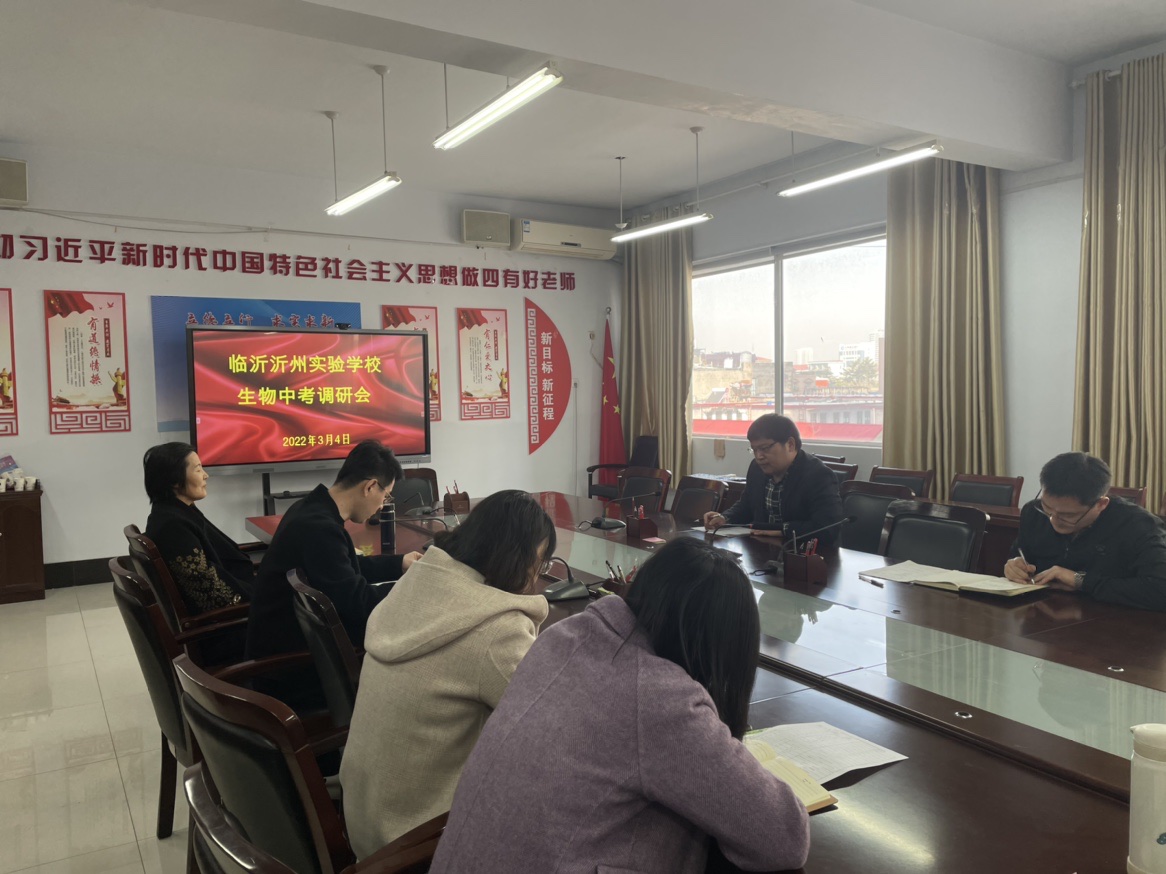 為了準(zhǔn)確把握生物中考備考方向,優(yōu)化中考備考策略,全面提高學(xué)校教育教學(xué)質(zhì)量。3月4日上午,臨沂沂州實(shí)驗學(xué)校八年級召開生物中考調(diào)研會。會議由教務(wù)處劉淼主任主持,八年級主任魏曉軍、生物教研組長徐雷主任以及七、八年級全體生物教師參加會議。