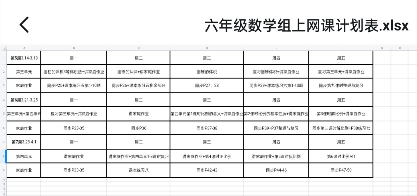 接到學校通知后,年級召開年級會議,落實周教學計劃,對授課安排初步達成共識。由年級教務(wù)管委朱崇帥老師牽頭,根據(jù)教務(wù)處的統(tǒng)籌安排,協(xié)調(diào)六年級各備課組,預(yù)排課程表。之后,各班級分別召開“線上學習部署家長會”,幫助家長與學生盡快準備線上學習。