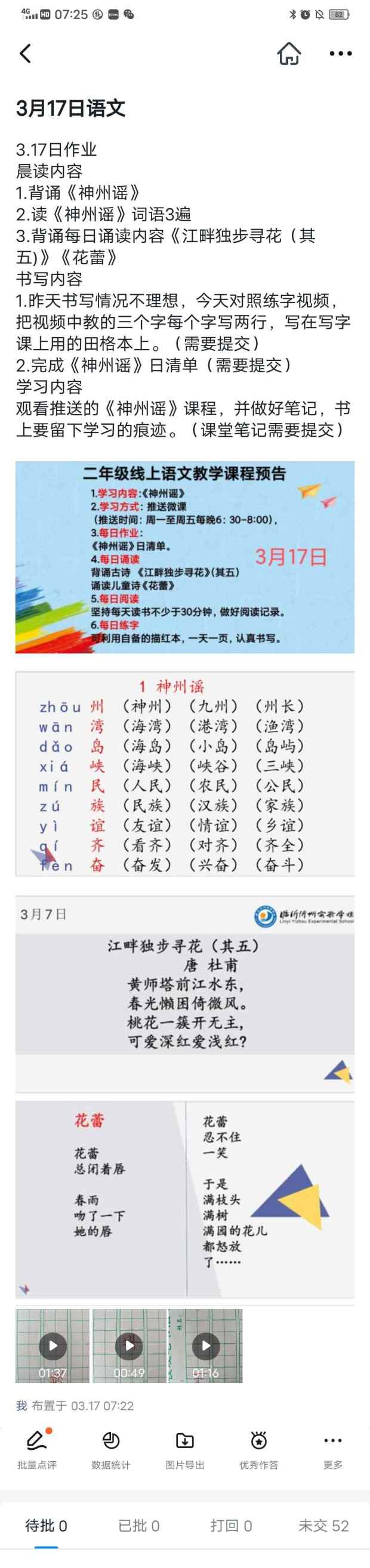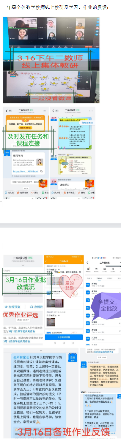 3月16日是同學(xué)們線上學(xué)習(xí)第一天,學(xué)校各級(jí)領(lǐng)導(dǎo)進(jìn)入各班級(jí)釘釘群,對(duì)各班級(jí)線上學(xué)習(xí)情況進(jìn)行監(jiān)督?!吧倌暌讓W(xué)老難成,一寸光陰不可輕”,雖然是非常時(shí)期,同學(xué)們居家在家長(zhǎng)和老師的督促下觀看微課,認(rèn)真練字,每天安排不少于30分鐘的課外閱讀,適當(dāng)安排兒歌與古詩(shī)朗讀和背誦,完成數(shù)學(xué)練習(xí)題。二年級(jí)語(yǔ)文數(shù)學(xué)任課老師針對(duì)學(xué)生學(xué)習(xí)情況積極進(jìn)行反饋,線上教學(xué)工作有條不紊的進(jìn)行。