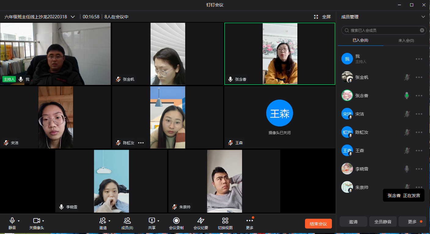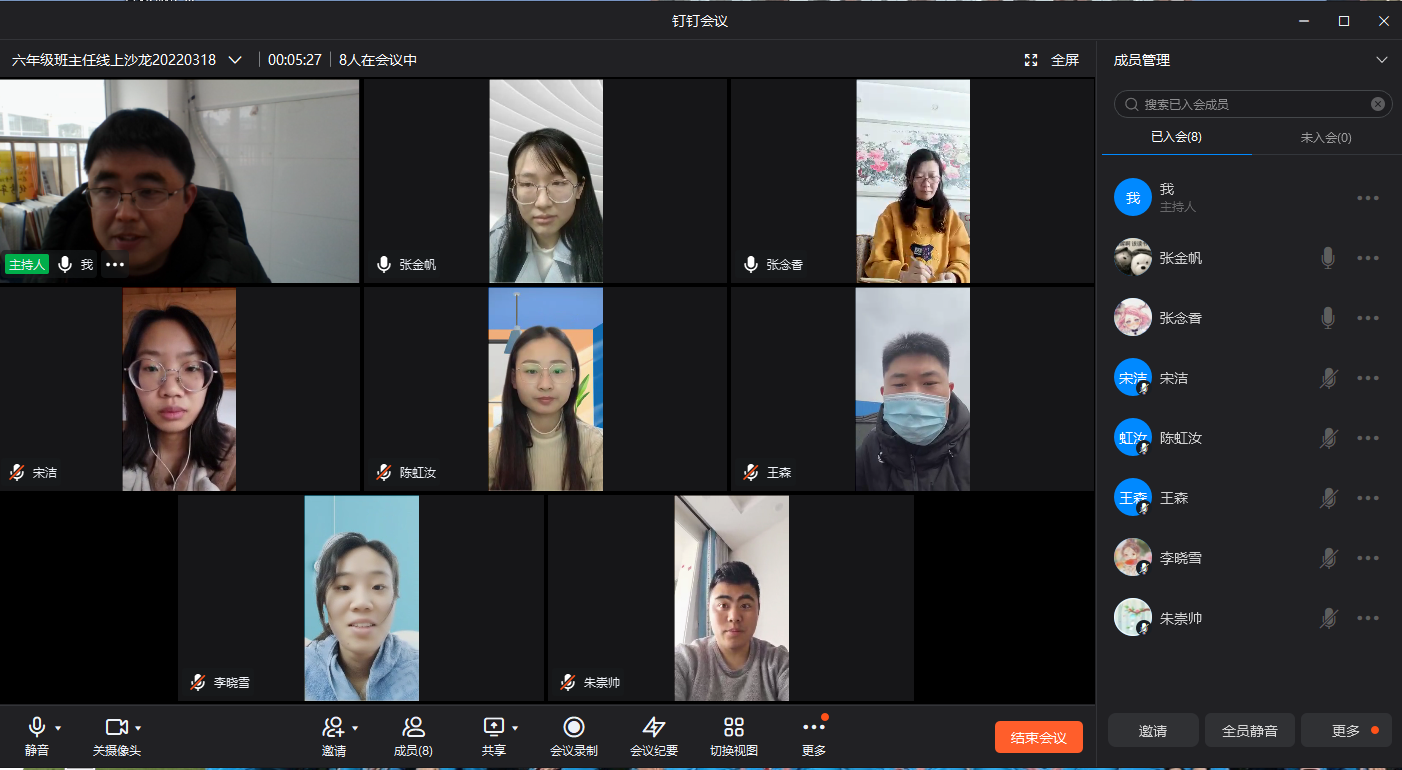 會議最后一項,年級管委張金帆老師就本周日晚上在釘釘線上召開家校共育家長會暨學生線上學習規(guī)范主題班會,作了《居家上網(wǎng)課,如何更好引導孩子提高自控力》的分享發(fā)言,全體班主任積極建言獻策,助力更好地引領(lǐng)家長提高孩子高學習自控力,更好地提高學習效率。