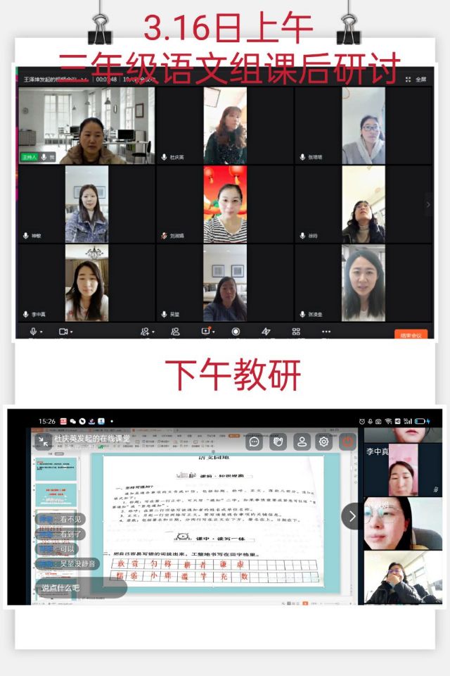 直播結束后,各科老師針對當天線上教學過程中出現(xiàn)的問題進行線上研討,同時為了更好的教學效果,第二天要講課的老師要先試講,試講過程中發(fā)現(xiàn)的問題共同探討,當場調(diào)整。大家齊思考,共謀略,一起向未來!