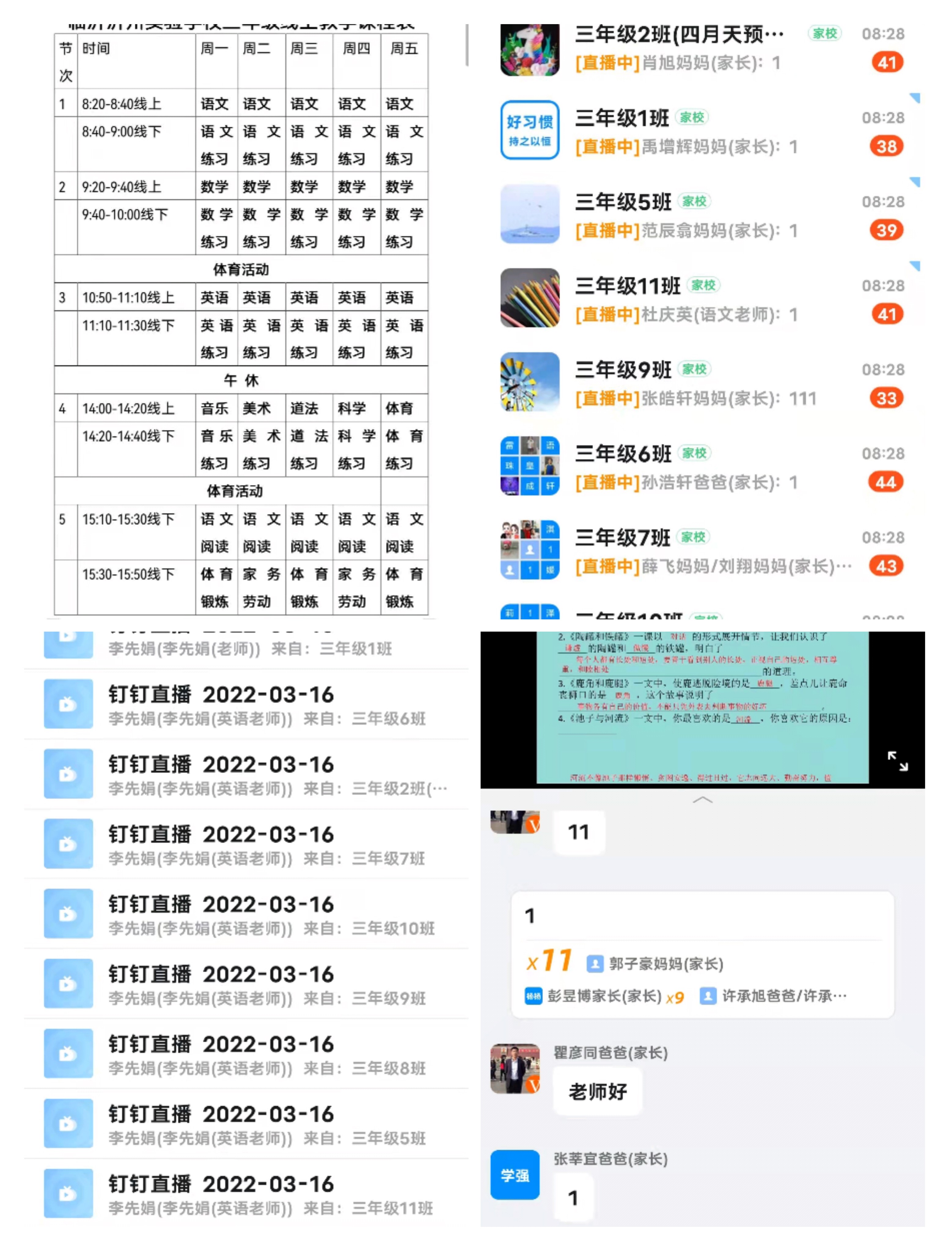 3月16日,學生們根據(jù)老師的安排如期上課,老師們在原有學案的基礎上,提供課件、視頻、微課等豐富的學習資源,激發(fā)學生學習興趣。并通過釘釘直播、家校本、打卡等形式指導學生線上學習。