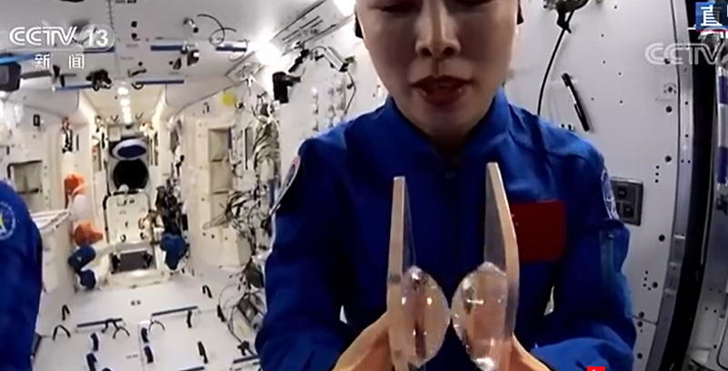 還是熟悉的老師,卻有意外的驚喜,王亞平老師在四季如春的太空站里用米酸鈉溶液做出了一個冰雪球,當沾了結(jié)晶核的毛桿觸碰到米酸鈉溶液液體球的瞬間,液體球竟變成了一個熱乎乎的“冰球”,與此同時隔著屏幕與整個大氣層的學生們也仿佛瞬間凝固,被眼前的一切驚得發(fā)呆:“原來《冰雪奇緣》里艾莎的魔力是可以被模仿的!”“倘若給我足夠的米酸鈉溶液和結(jié)晶核,我是不是就可以讓‘冰雪’常駐四季?”