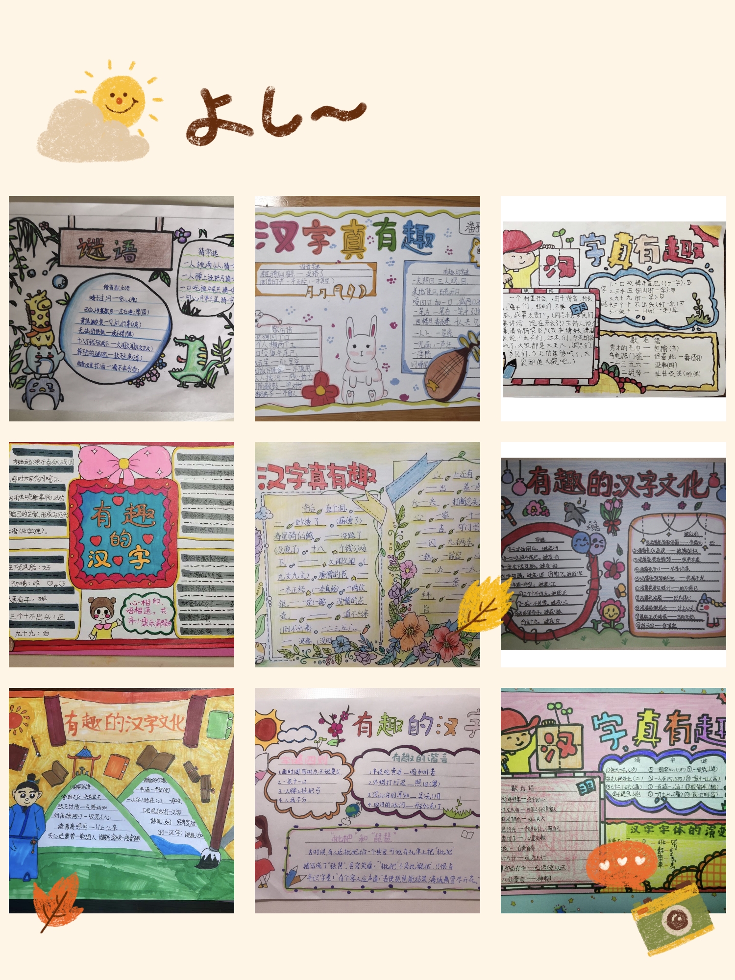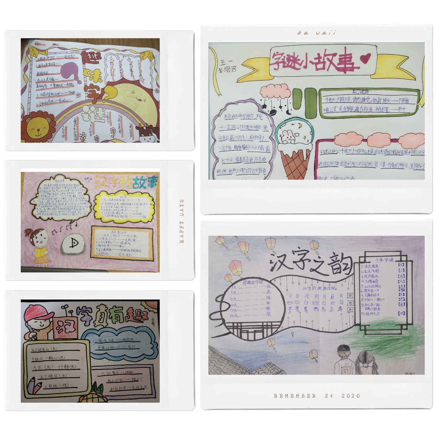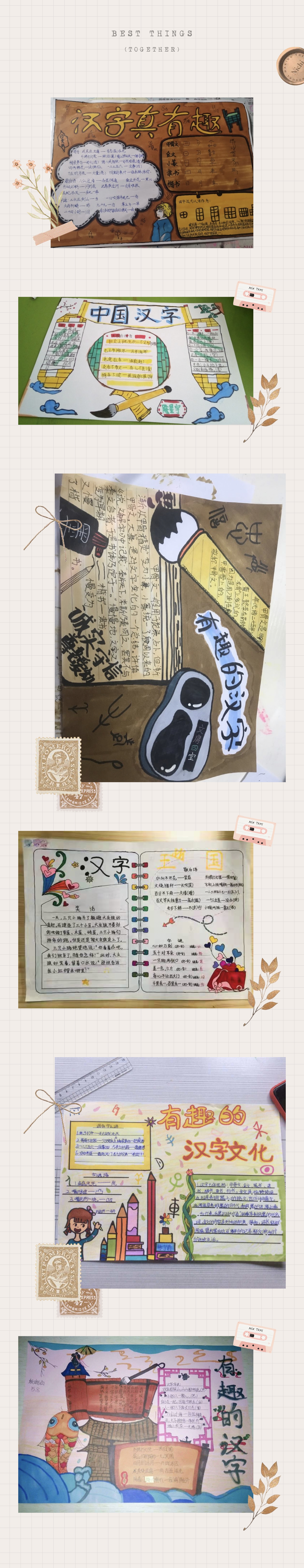 活動(dòng)開(kāi)展前,老師以單元主題為契機(jī),引導(dǎo)同學(xué)們通過(guò)查找資料、網(wǎng)絡(luò)檢索等方法,認(rèn)真了解漢字的發(fā)展,并將其制作成了一幅幅精美的手抄報(bào)。同學(xué)們把漢字的趣味點(diǎn)畫(huà)于筆端,在紙上給博大精深的漢字涂抹出絢麗的色彩,妙趣橫生,又令人大開(kāi)眼界。