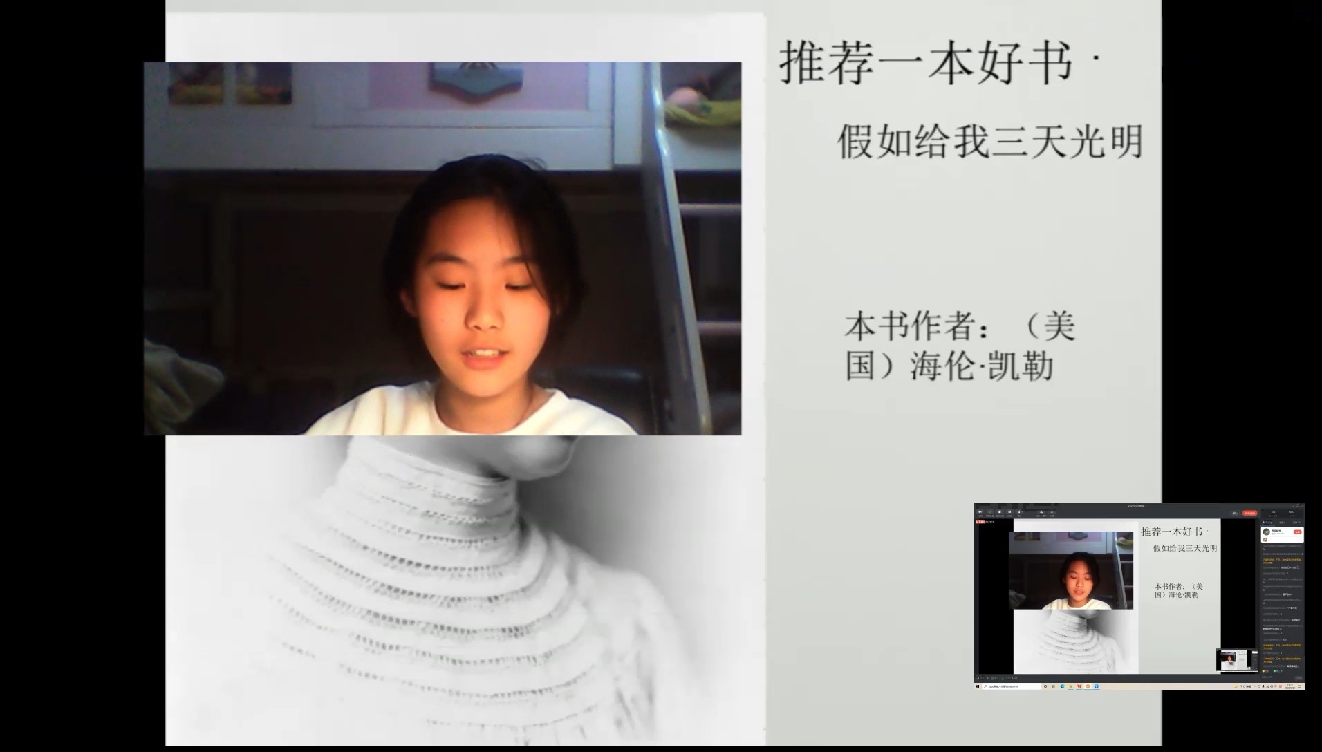 可是,特殊時(shí)期,不能會面,又該怎樣分享呢?想到此處,小小少年便把主意打到了每天都在直播間傳道解惑的語文老師的身上。他們也想當(dāng)一次主播,利用直播平臺,把自己的好書分享給全年級的小伙伴。君子有成人之美,語文老師化身主持人/場控,為他們助力。