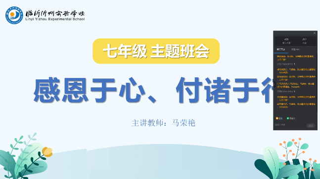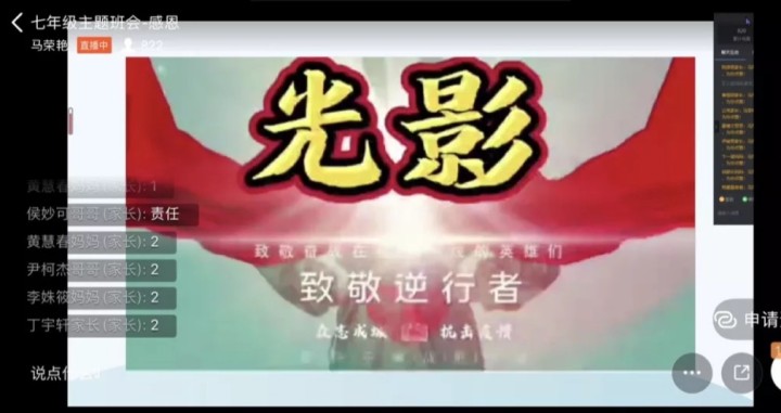 感恩是人生的一堂必修課。學會感恩,會讓我們對世界充滿愛意和感激,更能懂得尊重他人,感受生活的美好。為了讓同學們更好地理解感恩,學會感恩,七年級于4月6日下午以釘釘直播的形式召開了第三期德育主題班會,本次班會主題為“感恩于心,付諸于行”,由馬榮艷老師主講。