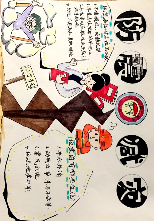 在“防災減災日”來臨之際,為保證師生安全,提高學生抗擊突發(fā)事件的應變能力,當發(fā)生事故時,能根據(jù)所學的防災減災知識,展開自救自護,確保學生安全,臨沂沂州實驗六年級于5月份先進行手抄報宣傳,然后舉行了以防災減災為主題的教育班會。