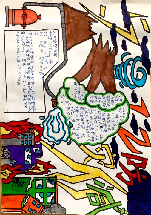 六年級同學們首先以防災減災為主題制作了手抄報,然后以班級為單位進行了主題教育班會。