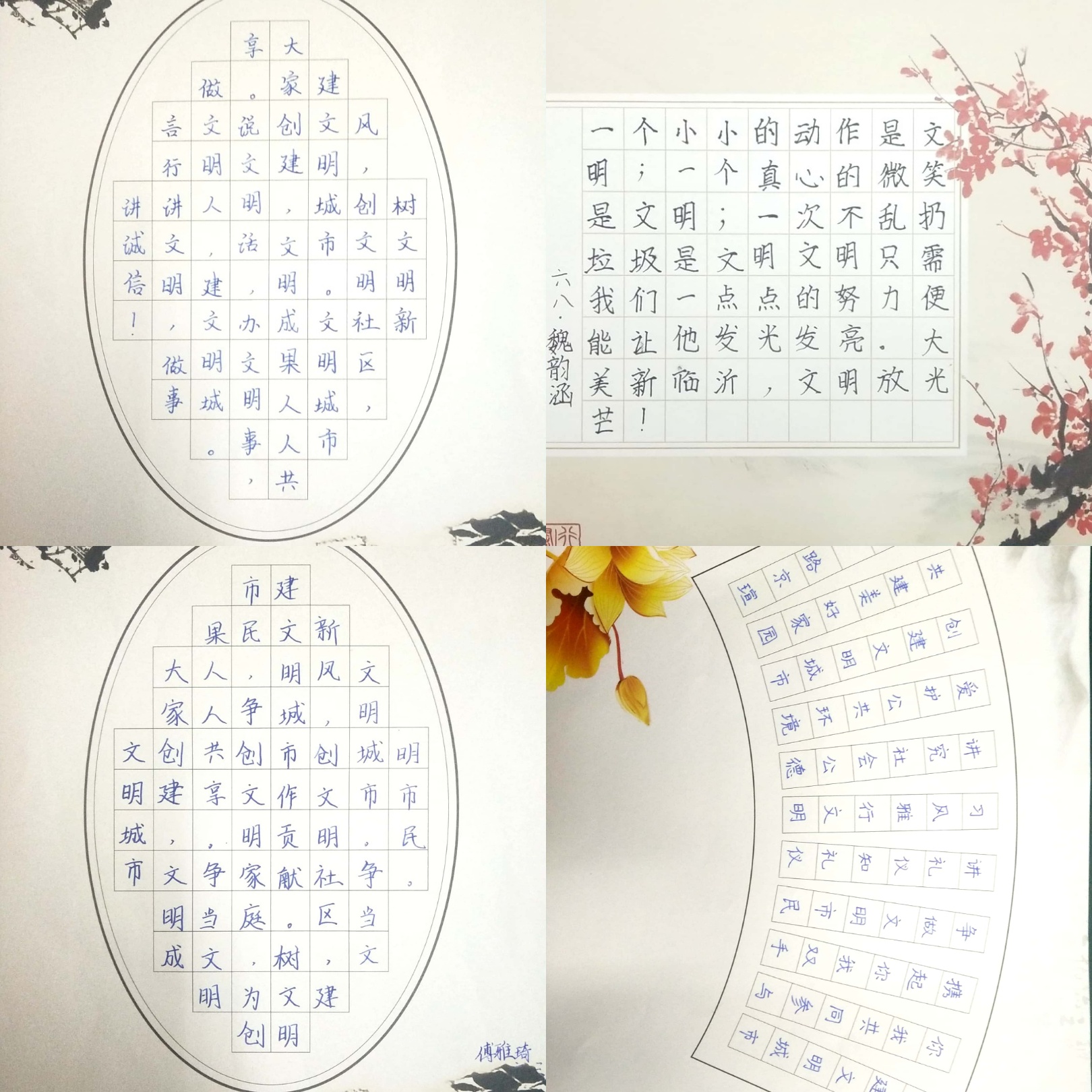 六年級學(xué)生各顯身手,積極參與,創(chuàng)造出一批優(yōu)秀的文藝作品,全面助力文明城市創(chuàng)建!