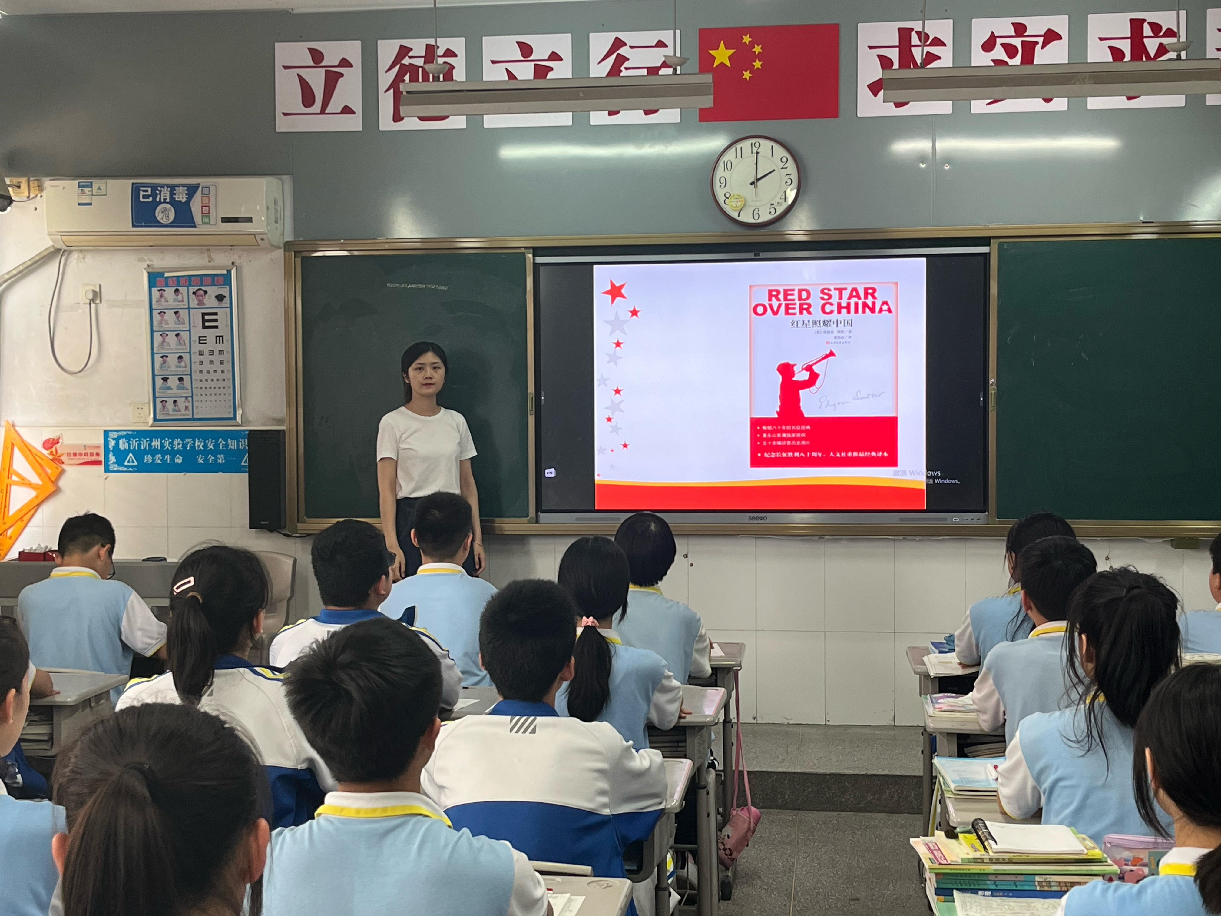 結(jié)合本學(xué)期必讀書目《紅星照耀中國》,各班語文老師精心設(shè)計(jì)教案,設(shè)置教學(xué)情境,引導(dǎo)學(xué)生進(jìn)行有效的整本書閱讀,并對具體的讀書方法做了細(xì)致的指導(dǎo),讓學(xué)生學(xué)會與文本對話,引領(lǐng)學(xué)生由淺入深的閱讀,成為學(xué)生閱讀的“引路人”。通過指導(dǎo),學(xué)生了解了讀書方法,并很快運(yùn)用到了自己的讀書實(shí)踐;交流展示時(shí),學(xué)生或讀或談,或演或唱,讀書熱情在展示過程中得到了淋漓盡致的發(fā)揮。閱讀指導(dǎo)課變“閱讀”為“悅讀”,讓學(xué)生感受閱讀的喜悅,體會成功的快樂,在濃濃的書香氛圍中健康成長。