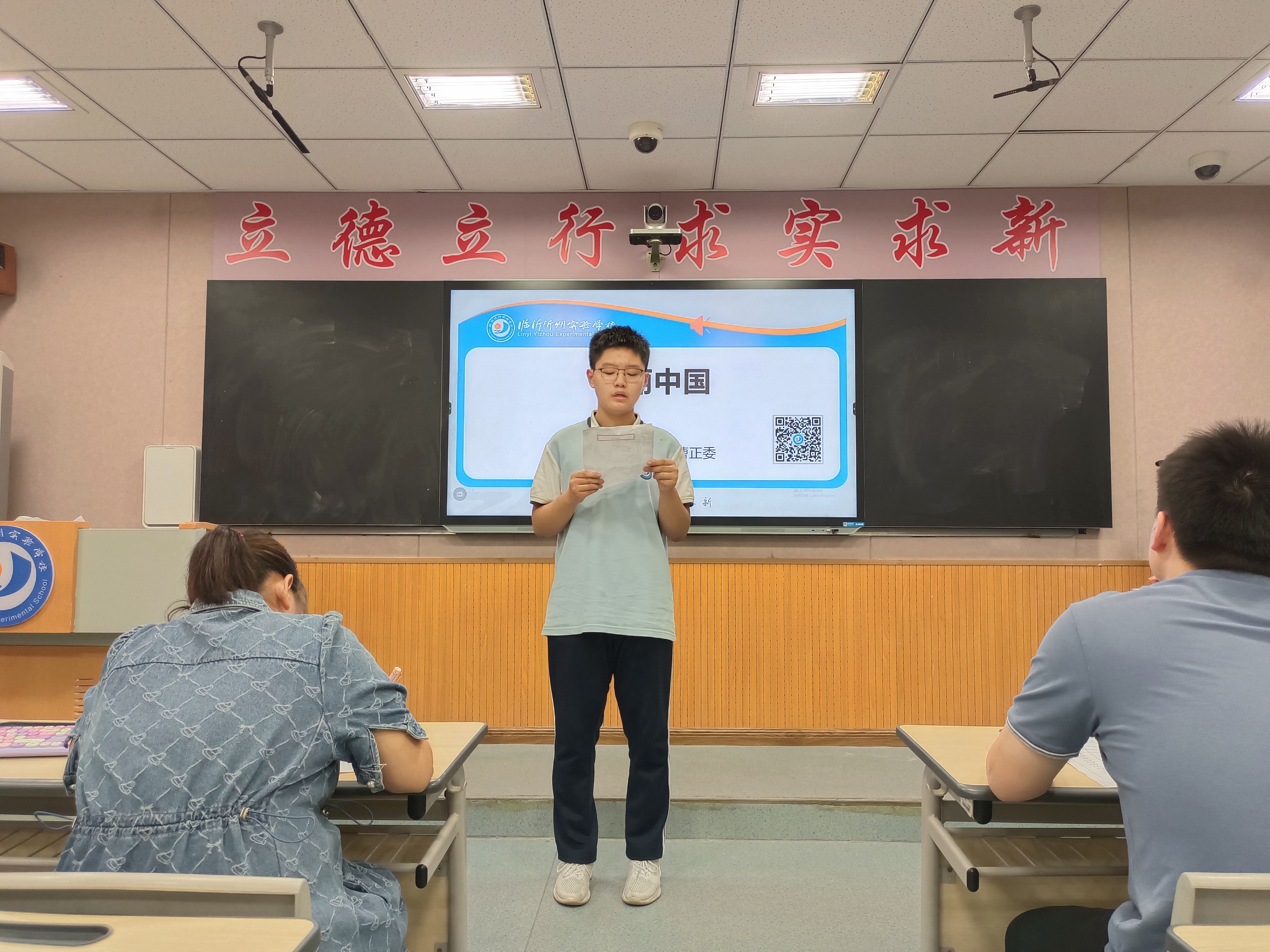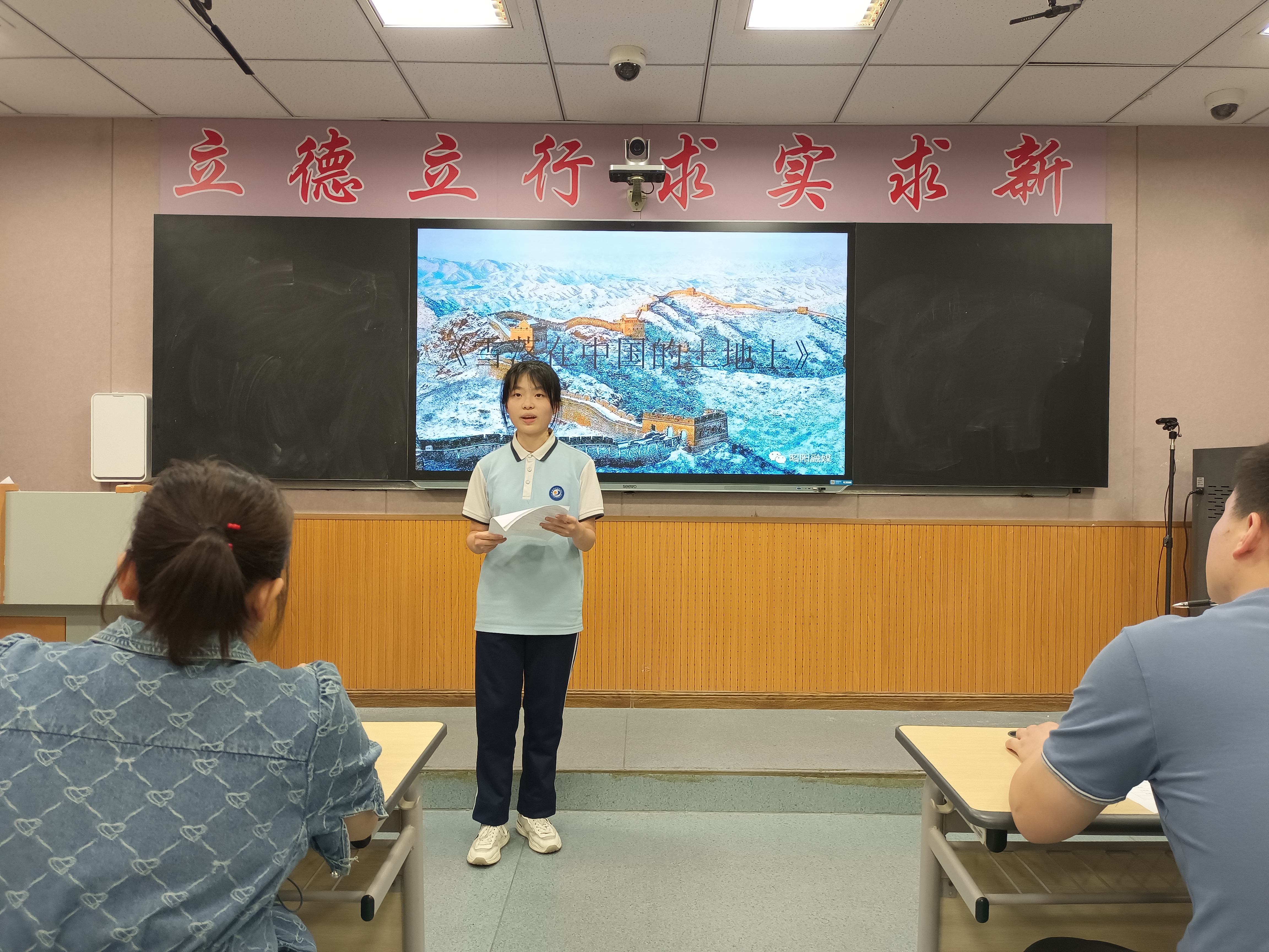 比賽在一陣陣掌聲中拉開序幕,15個(gè)參賽選手依次登臺(tái),落落大方,精神抖擻。同學(xué)們精神飽滿、字正腔圓,聲情并茂地朗誦了《祖國啊,我親愛的祖國》、《雪落在中國的土地上》、《紅旗頌》等作品,同學(xué)們或溫柔婉轉(zhuǎn),或慷慨激昂的演繹,帶領(lǐng)我們走進(jìn)了那段從建黨到建國,從站起來到富起來,從富起來到強(qiáng)起來的光輝歲月。他們用少年意氣詮釋心中對祖國最深沉的愛,表達(dá)了對祖國美好未來的憧憬,精彩的表現(xiàn)深深地感染了在場師生,贏得陣陣掌聲。