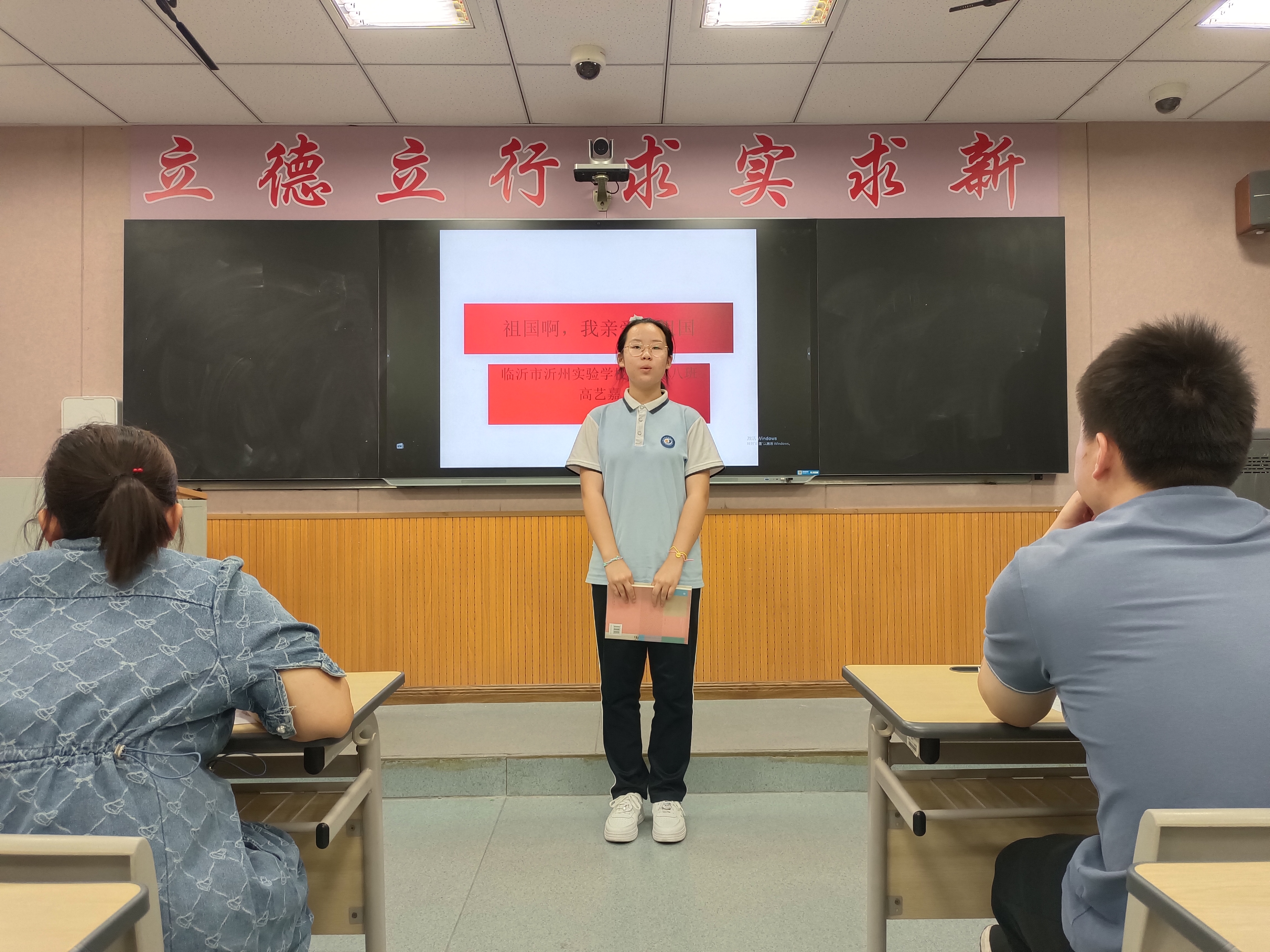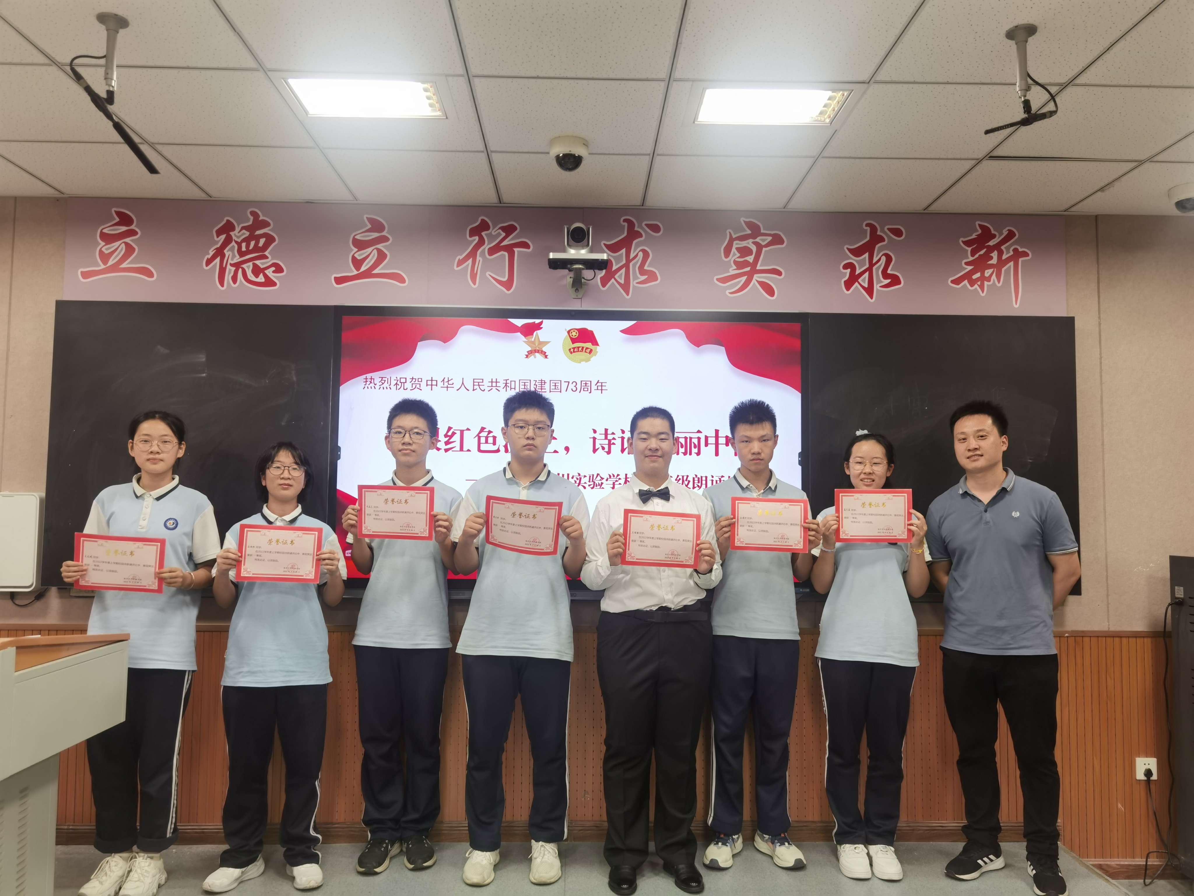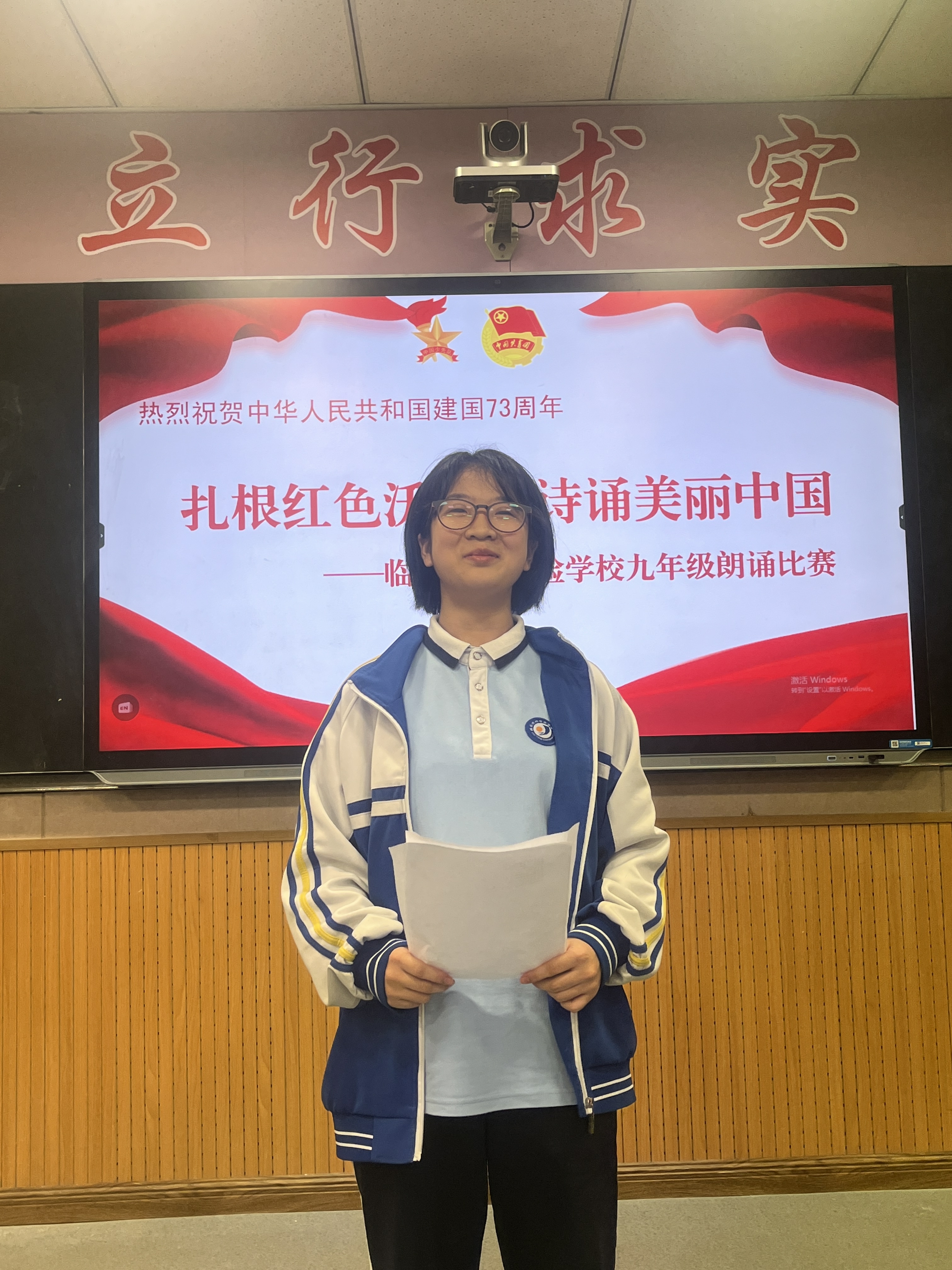 為號(hào)召我校青少年以最飽滿的熱情迎接黨的二十大勝利召開,慶祝中華人民共和國成立73周年,引導(dǎo)廣大青少年在傳承中華優(yōu)秀傳統(tǒng)文化中詮釋愛國之理、涵養(yǎng)愛國之德、砥礪愛國之志、激發(fā)愛國之情。2022年9月30日,我校九年級開展了“扎根紅色沃土,詩誦美麗中國”朗誦比賽。