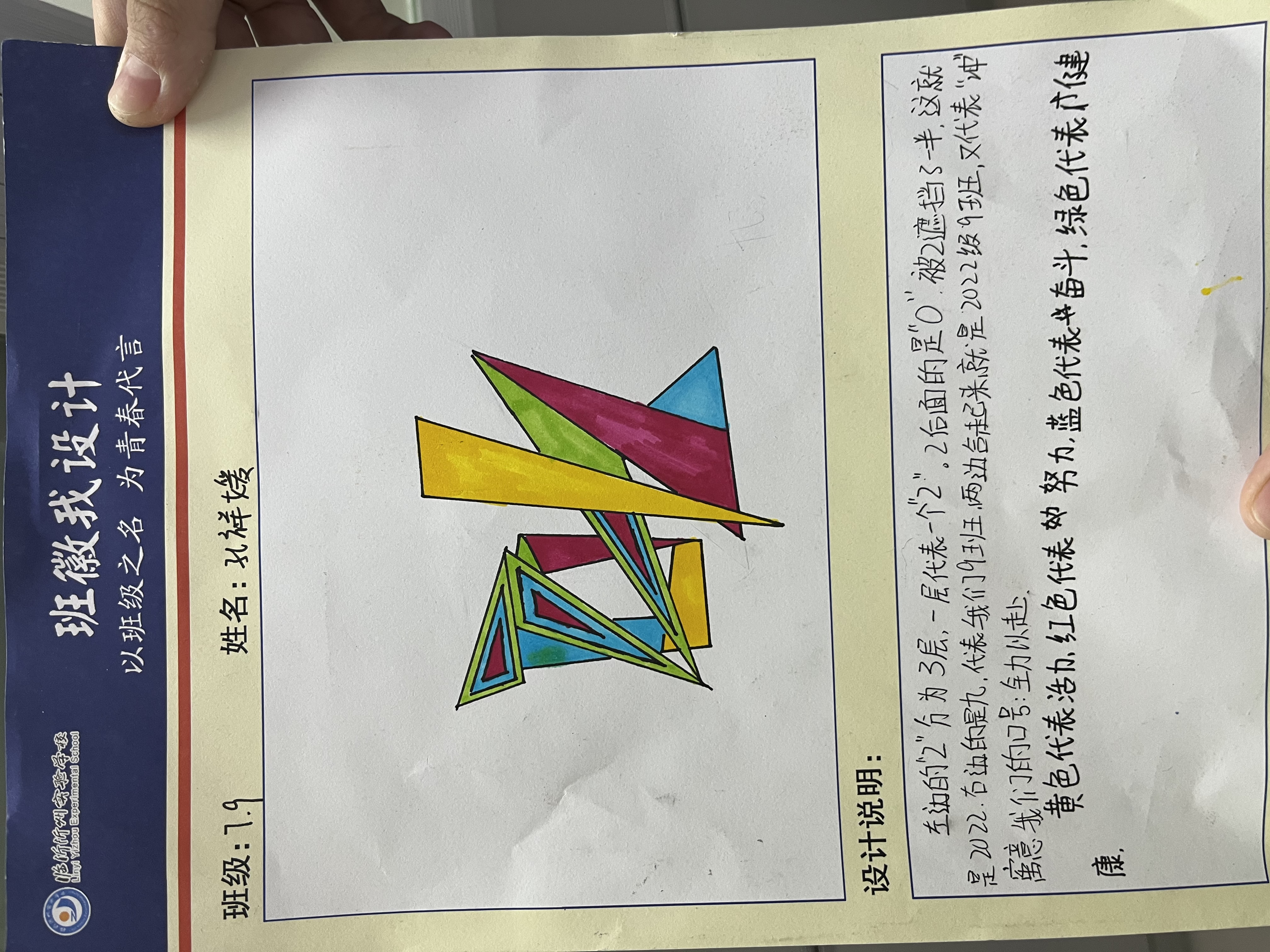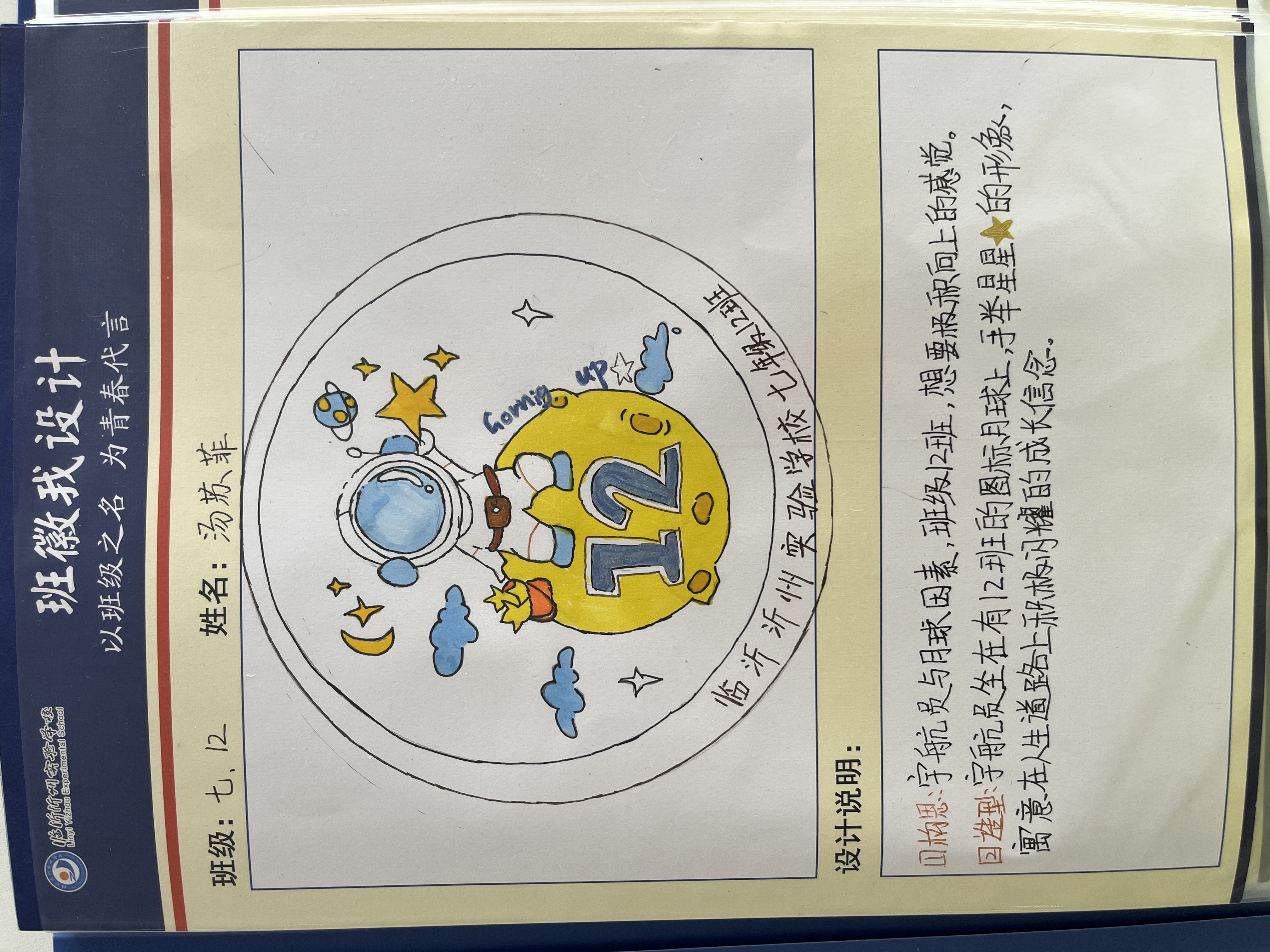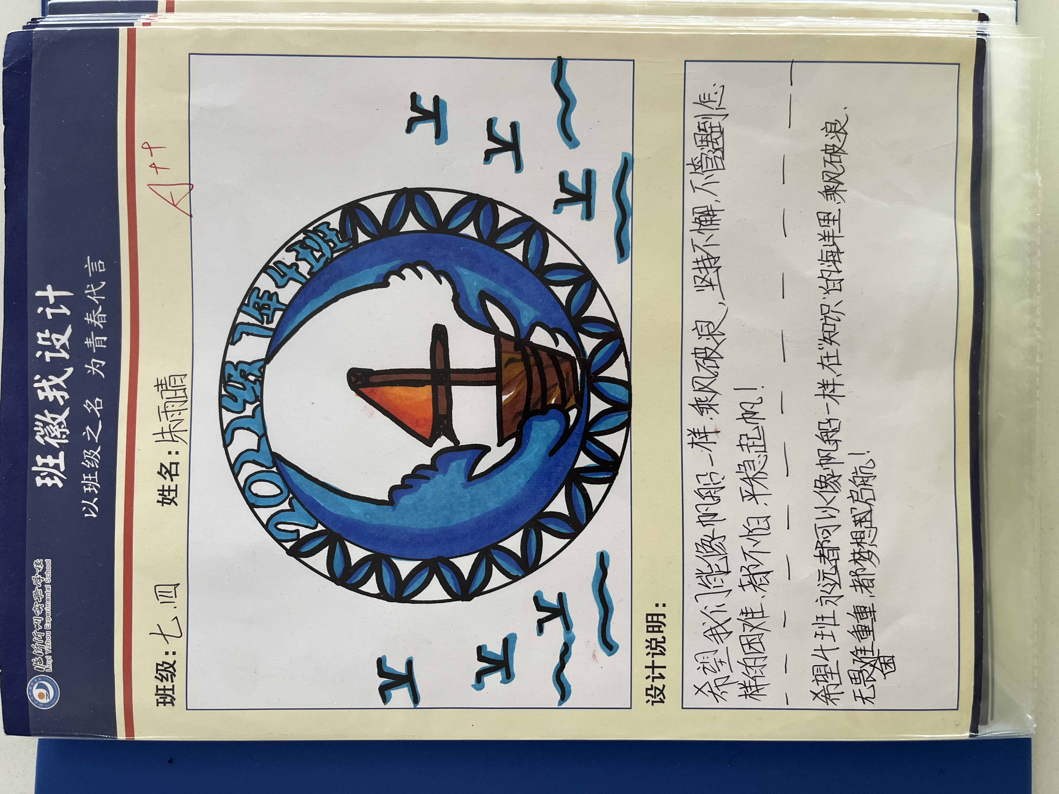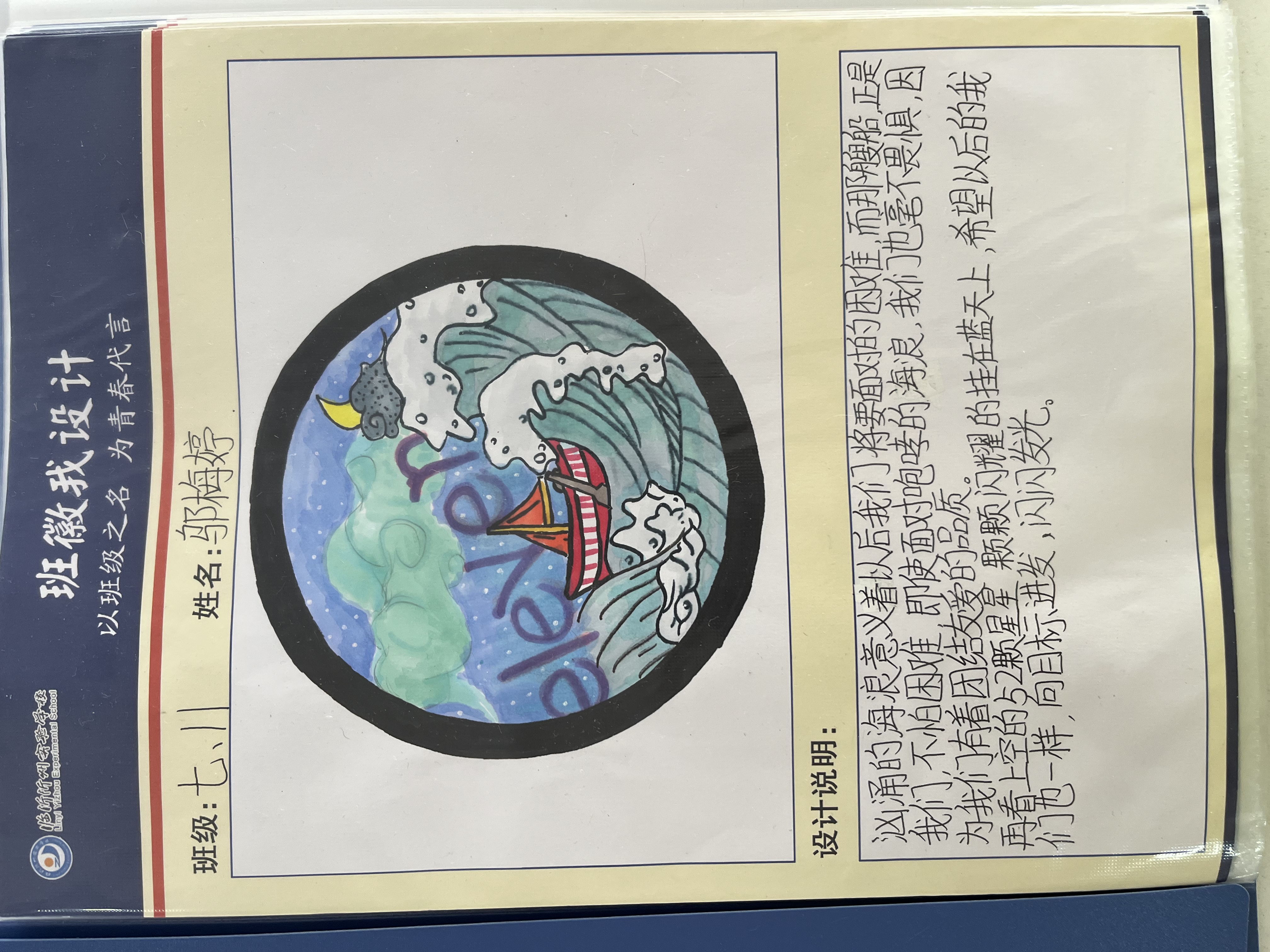 為促進班級之間的了解,增進同學之間的友誼,共塑班級榮譽感和集體感,提高班級凝聚力,2022年10月,沂州實驗學校七年級舉辦了班徽設計活動,將美育融入到班級文化建設中,七年級全體同學參加了這次活動。在設計班徽的過程中,同學們盡情發(fā)揮自己的創(chuàng)造力與想象力,將班名、班級理念等元素嵌入對班徽的理解和期望中。