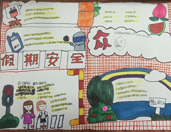 為進(jìn)一步推動安全教育進(jìn)校園,提升中小學(xué)生的安全素養(yǎng),增強(qiáng)師生的安全意識,臨沂市舉行了中小學(xué)生安全教育手抄報大賽活動。四年級積極響應(yīng)號召,并以“學(xué)習(xí)安全知識,樹立安全意識”為主題開展了安全教育手抄報比賽。