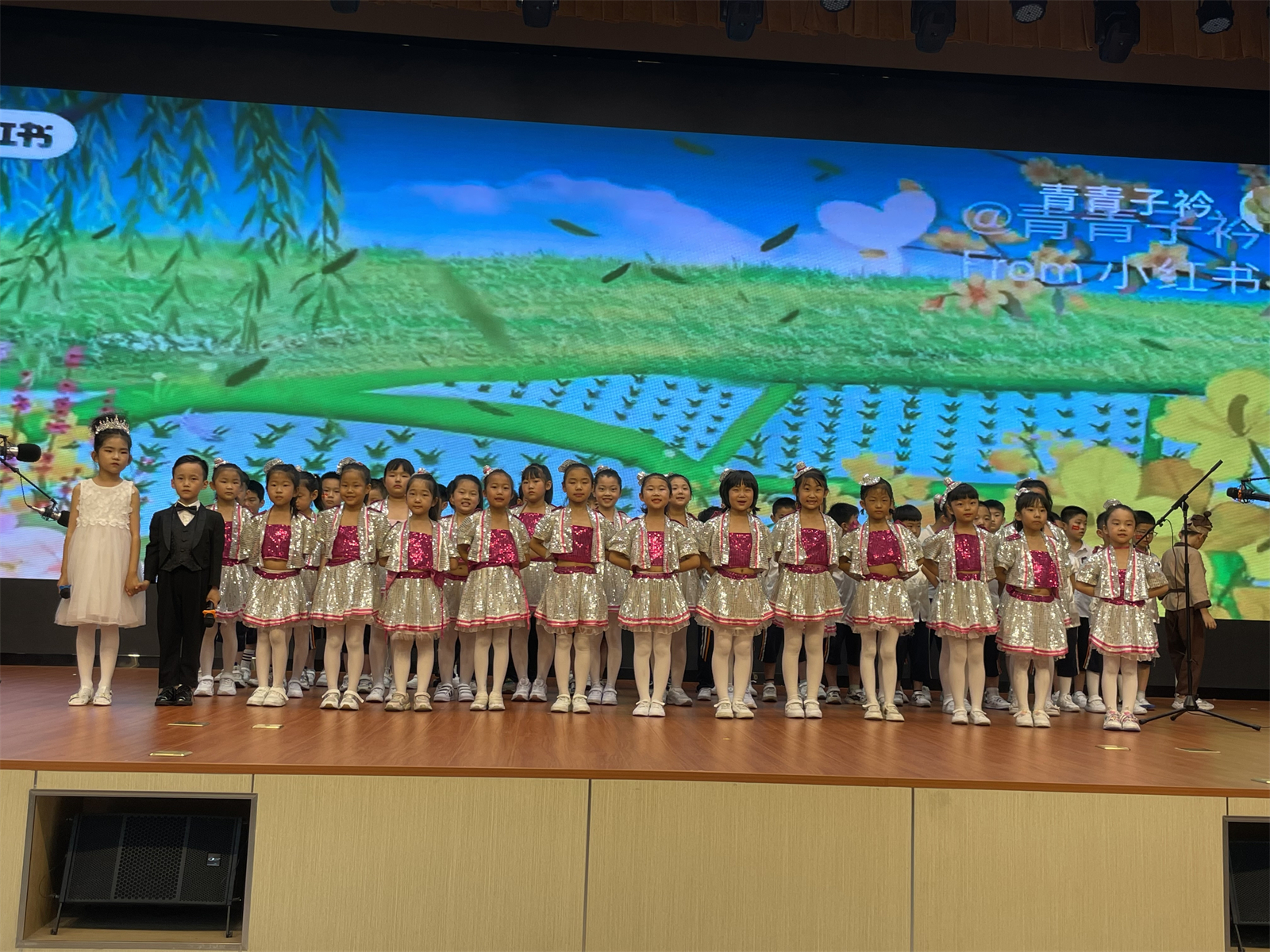 在副校長張福生激情洋溢的開幕詞中,一年級六一合唱比賽悠揚地拉開帷幕。團結(jié)一心大合唱,風雨同舟實力強!首先,一首《蟲兒飛》,一六班的孩子們正暢游在音樂的海洋。接著,一年級八班的《聽我說》用歌聲贊美春天,用歌聲頌揚勤儉。臺下掌聲雷動,隨著隊形不斷變換,一年級一班將熱血獻給偉大的祖國,把青春融入祖國的江河,他們帶來的歌曲《半生雪》讓我們的心靈為之震撼。小種子有夢想,她們已經(jīng)出發(fā)排好隊,讓我們來聽一聽一年級五班的《聽我說》。成長是一場一往無前的旅行,勇氣是藏在我們心里的一顆種子,一年級七班學生帶來他們勇氣的聲音《勇氣大爆發(fā)》,堅定自己的夢想,出發(fā)!看!從一條條開著絨球花和太陽花的小路上,走來了許多小學生。那是一年級十班同學帶來的《Siyahamba》。在美麗的森林里,住著快樂的布谷鳥。寒來暑往,秋收冬藏,這只布谷鳥永遠是快樂的!它積極、陽光、開朗,溫暖了每一位好朋友。讓我們來聽聽一年級九班的《布谷鳥》。太陽、花海、歌聲與美夢,點燃心中的夢想,團結(jié)之心,愛國之心,要從孩子們培養(yǎng),一年級二班帶來最美的聲音《童心向黨》將比賽推向了高潮。在這個時代,勇者無畏,愈戰(zhàn)愈強,一年級三班帶來《孤勇者》昂揚向上,奮力拼搏。最后,一年級四班一首歡快的《布谷鳥》結(jié)束合唱比賽。同時,音樂老師張安琪帶來了一年級特色課課程展示:一年級女聲小合唱《萱草花》,用優(yōu)美的舞姿,動聽的歌聲展示可愛女生的風采。