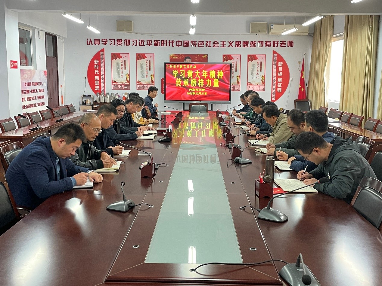 2021年10月27日,我校行政黨支部在立德樓三層會議室開展十月份主題黨日活動。本次主題黨日活動以“學(xué)習(xí)黃大年精神,傳承榜樣力量”為主題?;顒佑尚姓h支部書記劉淼同志主持,學(xué)校黨委委員李志強(qiáng)同志和行政黨支部全體黨員參加。