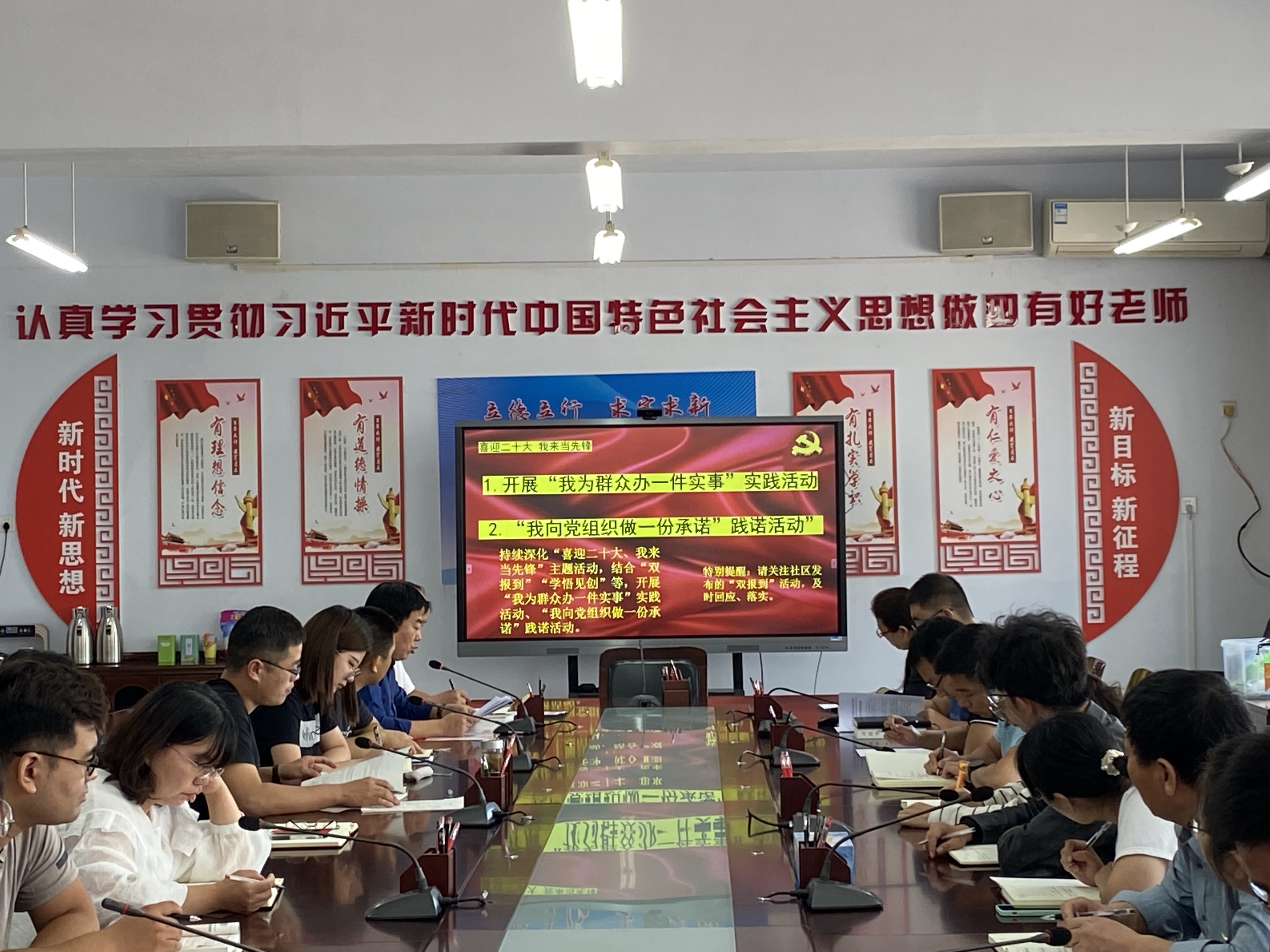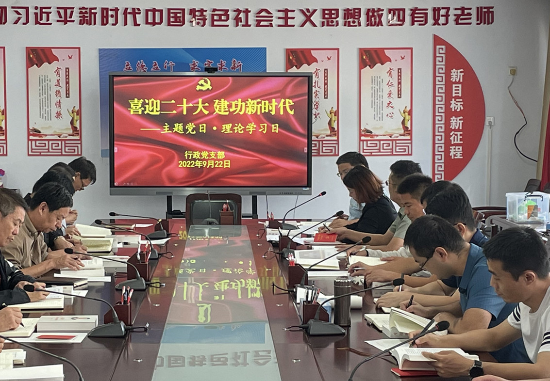 為喜迎黨的二十大,弘揚偉大建黨精神,激發(fā)廣大黨員實干擔當?shù)臒崆?,堅?/span>“學理論、悟思想、見行動、創(chuàng)一流”的使命感與責任感,2022年9月22日下午,我校各黨支部召開“喜迎二十大 建功新時代”主題黨日暨“理論學習日”活動,以實際行動迎接黨的二十大勝利召開。