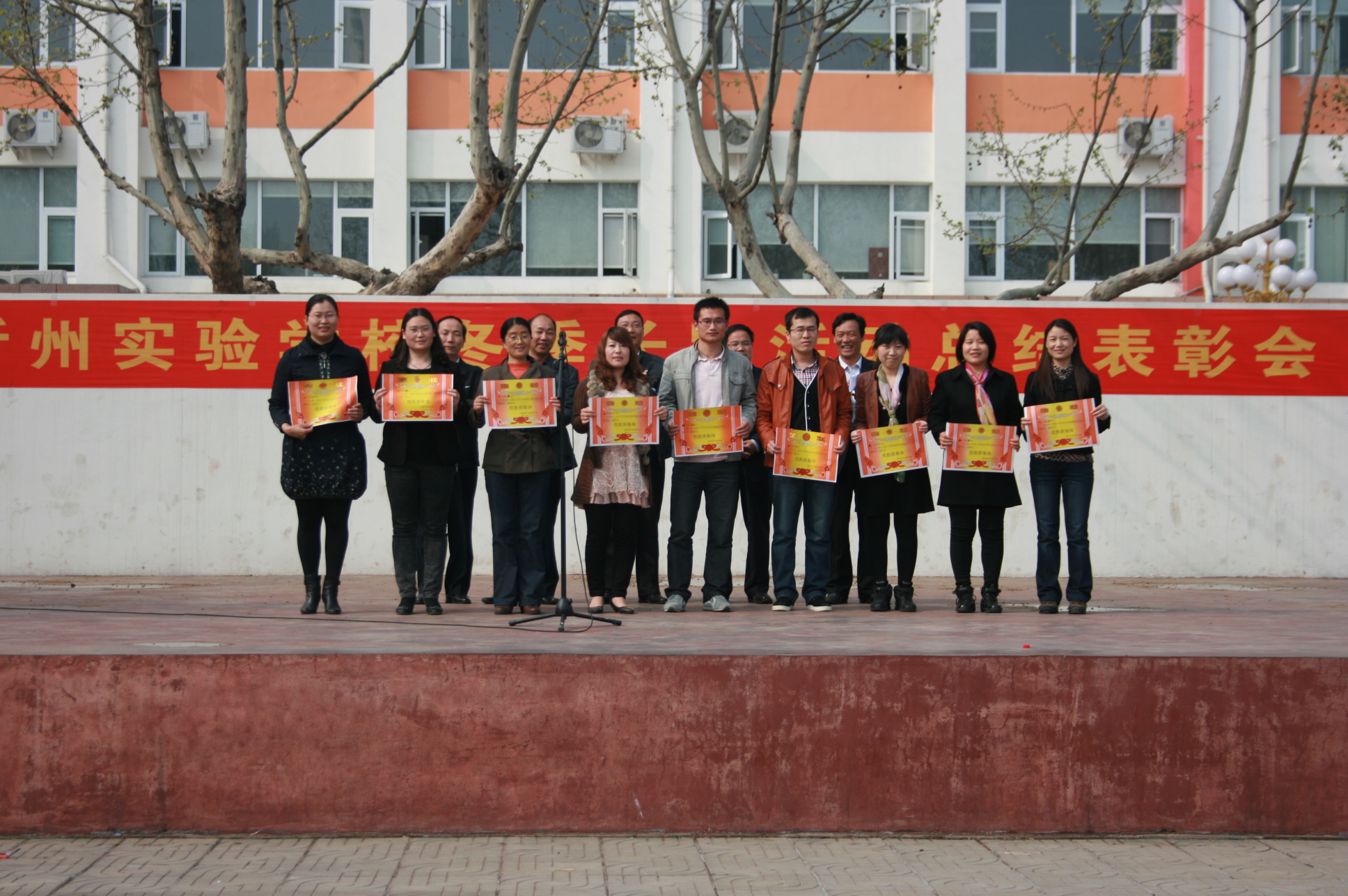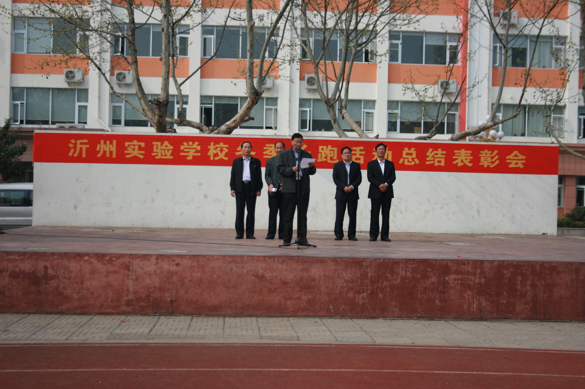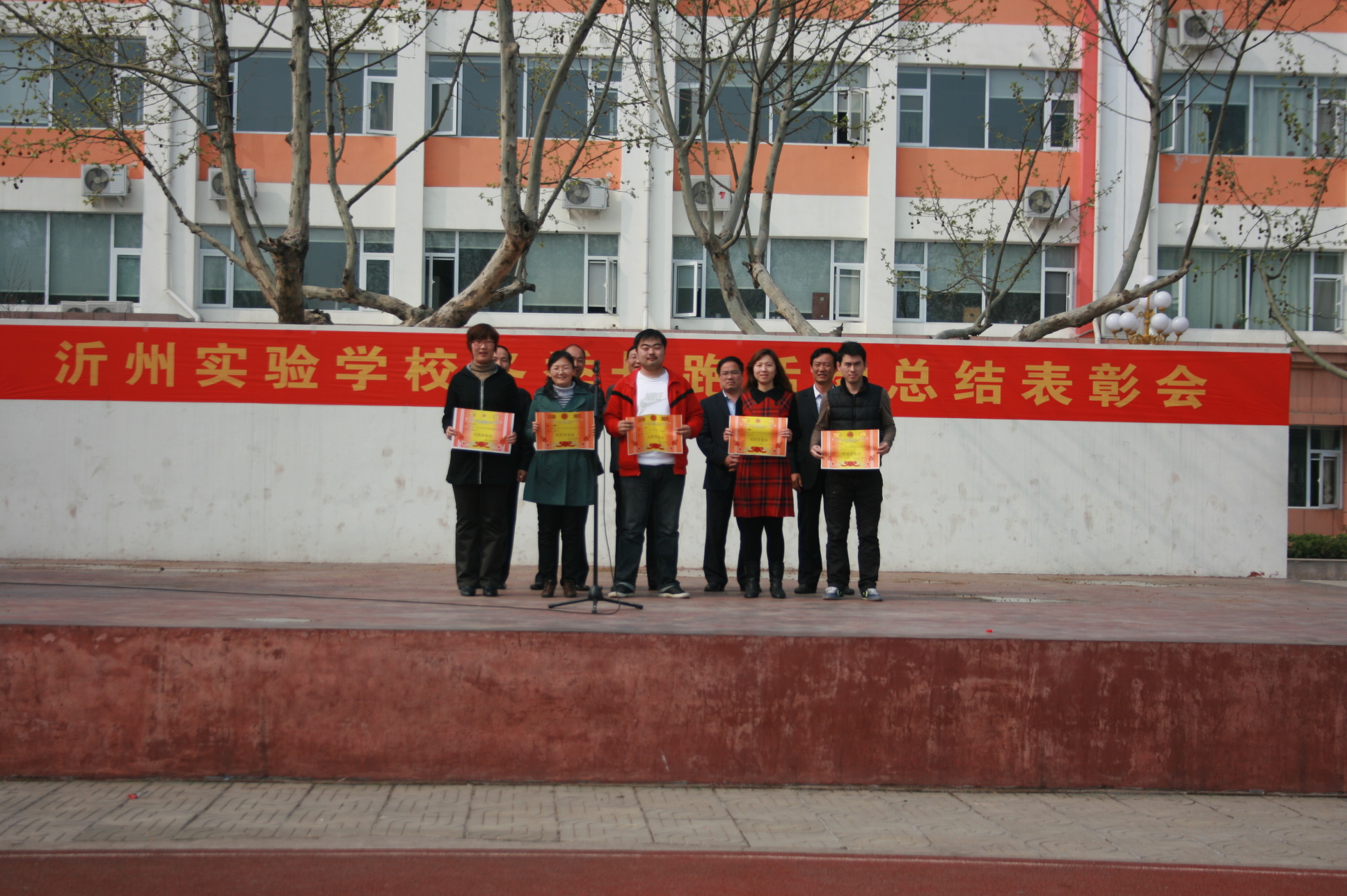 4月13日下午,我校師生在塑膠操場召開了2011—2012學年冬季長跑活動總結(jié)暨表彰大會。相關(guān)處室主任出席了頒獎儀式。會議由張福生主任主持,尹作鵬主任就冬季長跑活動做了總結(jié);莊建華主任宣讀了表彰決定;李守峰副校長做了重要講話。