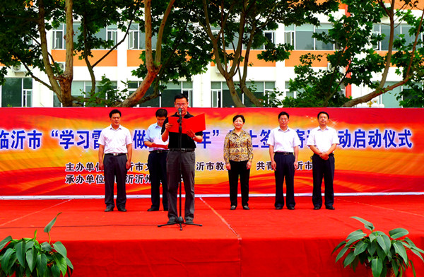 為加強未成年人思想道德建設(shè),引導(dǎo)青少年學(xué)雷鋒精神、做美德少年。5月29日,臨沂市“學(xué)習(xí)雷鋒,做美德少年”網(wǎng)上簽名寄語活動啟動儀式在沂州實驗學(xué)校舉行。出席儀式的領(lǐng)導(dǎo)有:市文明辦副主任朱偉,市教育局副局長李云凌,基教科長張德仁,蘭山區(qū)、羅莊區(qū)、河?xùn)|區(qū)、高新區(qū)和經(jīng)濟開發(fā)區(qū)文明辦的負(fù)責(zé)同志,沂州實驗學(xué)校王自祥校長、徐勤波書記,廣大師生參加了啟動儀式。儀式由團市委副書記吳鵬主持。