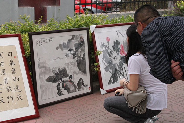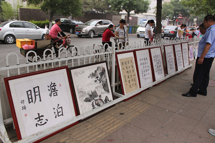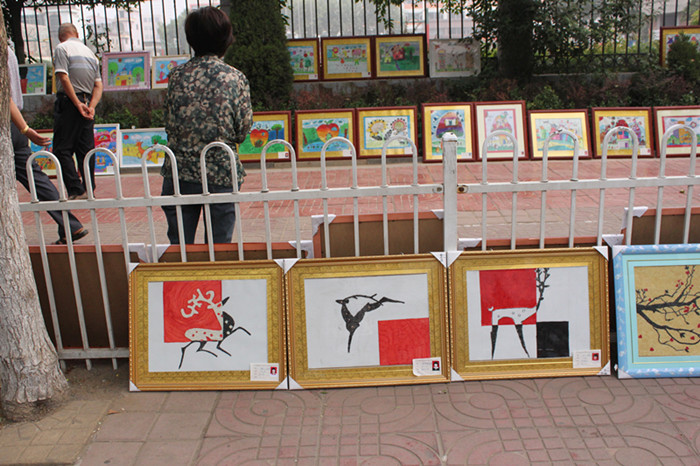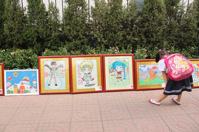 此次畫展設(shè)在學(xué)校大門兩側(cè),共展出書畫作品300余幅,這是學(xué)校“展示藝術(shù),快樂成長”辦學(xué)理念催生的累累碩果。自古英雄出少年!在這里,沒有八大山人的空靈深邃,卻有逍遙莊子的奇思妙想;沒有獻(xiàn)之書法的行云流水,卻有宋濂求學(xué)的扎實(shí)穩(wěn)健;沒有馬良題壁的神來之筆,卻有達(dá)氏畫蛋的執(zhí)著之功……所以筆力雖顯稚拙,卻顯靈性充分;布局雖不整飭,卻也渾然天成;雖不是專業(yè)人士,卻處處流露專業(yè)品位。