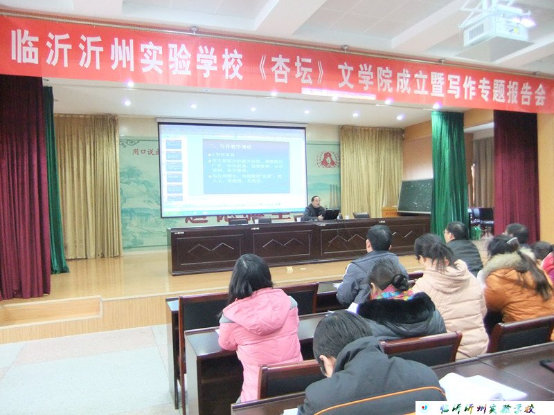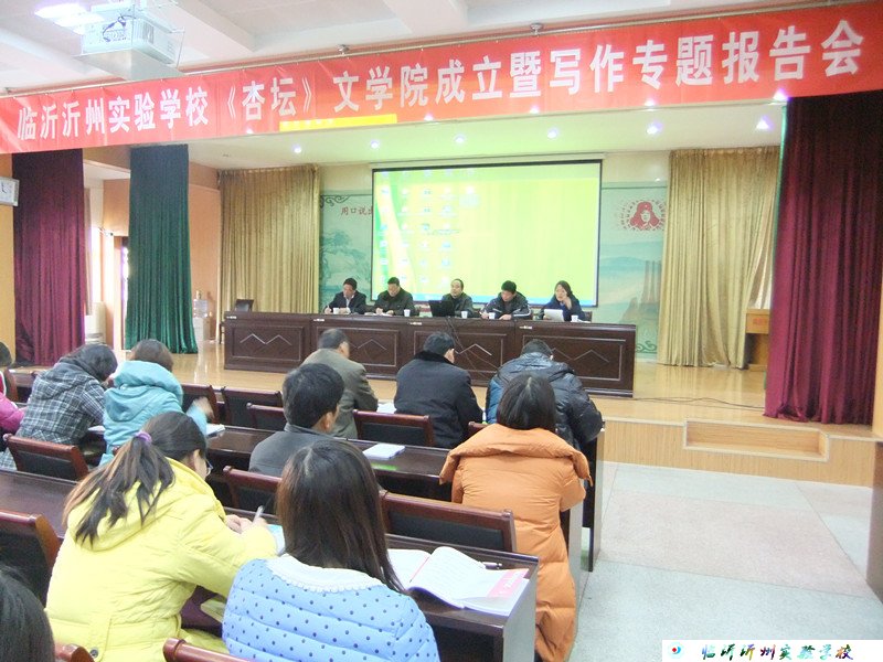 12月18日,臨沂沂州實(shí)驗(yàn)學(xué)校隆重召開(kāi)《杏壇》文學(xué)院成立暨寫(xiě)作專(zhuān)題報(bào)告會(huì)。大會(huì)由王愛(ài)永副校長(zhǎng)主持,李守峰副校長(zhǎng)就《杏壇》文學(xué)院的成立做了重要講話,《杏壇》文學(xué)院院長(zhǎng)王慶玲老師介紹了文學(xué)院的概況,臨沂市教科研中心龐云龍老師作了寫(xiě)作專(zhuān)題報(bào)告。李志強(qiáng)副校長(zhǎng)、教導(dǎo)處尹作鵬主任、學(xué)生處張福生主任、各學(xué)段主任、各教研室主任、全體語(yǔ)文老師、《杏壇》文學(xué)院小記者一同出席了大會(huì)。