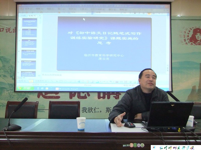 臨沂市教研室龐云龍老師做了題為“‘初中語(yǔ)文日記隨筆式寫(xiě)作訓(xùn)練實(shí)驗(yàn)研究’課題實(shí)施的思考”的精彩報(bào)告。龐老師從寫(xiě)作的廣義理解、寫(xiě)作教學(xué)的現(xiàn)狀、寫(xiě)作的現(xiàn)實(shí)需要、新課程標(biāo)準(zhǔn)的要求、選擇日記隨筆式寫(xiě)作的原因、日記隨筆式寫(xiě)作的實(shí)施原則、日記隨筆式寫(xiě)作過(guò)程中應(yīng)注意的幾個(gè)環(huán)節(jié)等方面做了詳細(xì)的解說(shuō),對(duì)日記隨筆式寫(xiě)作教學(xué)做了一次全面而系統(tǒng)地梳理。