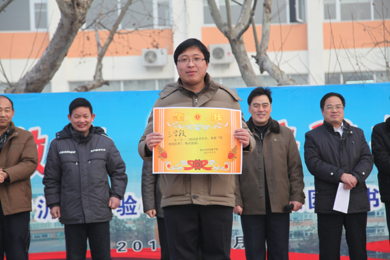 為開闊學(xué)生視野、陶冶學(xué)生情操,幫助學(xué)生積淀文化底蘊、提高文學(xué)修養(yǎng),2012年12月中旬,臨沂沂州實驗學(xué)校隆重舉辦了校園讀書節(jié)。2013年1月14日,為期一個月的讀書節(jié)成功閉幕,閉幕式在學(xué)校操場舉行。王自祥校長、徐勤波書記、李守峰副校長、王愛永副校長、李志強副校長、張福生主任以及各學(xué)段主任、各學(xué)院主任出席了閉幕式。