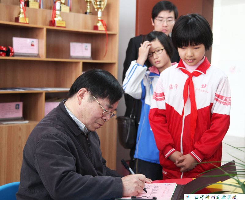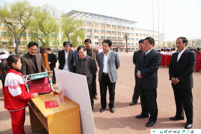 開幕式結(jié)束后,各位領(lǐng)導興致勃勃地觀看了學生發(fā)明作品和“變廢為寶”手工藝品展。參觀過程中魏成階教授對學生的發(fā)明創(chuàng)造作品饒有興趣,不時彎下腰來與學生親切交流,并向?qū)W生提出問題,對部分作品提出改進意見。最后領(lǐng)導們一起參觀學校的“小實驗家”室、“機器人”室、“小發(fā)明創(chuàng)造”室等學校的科技教室,參觀結(jié)束時魏教授欣然題詞寫下了“科技創(chuàng)造未來,祝同學們更上一層樓”,對學校的科技工作給予肯定,對學校取得的成績表示祝賀。(米堯剛)