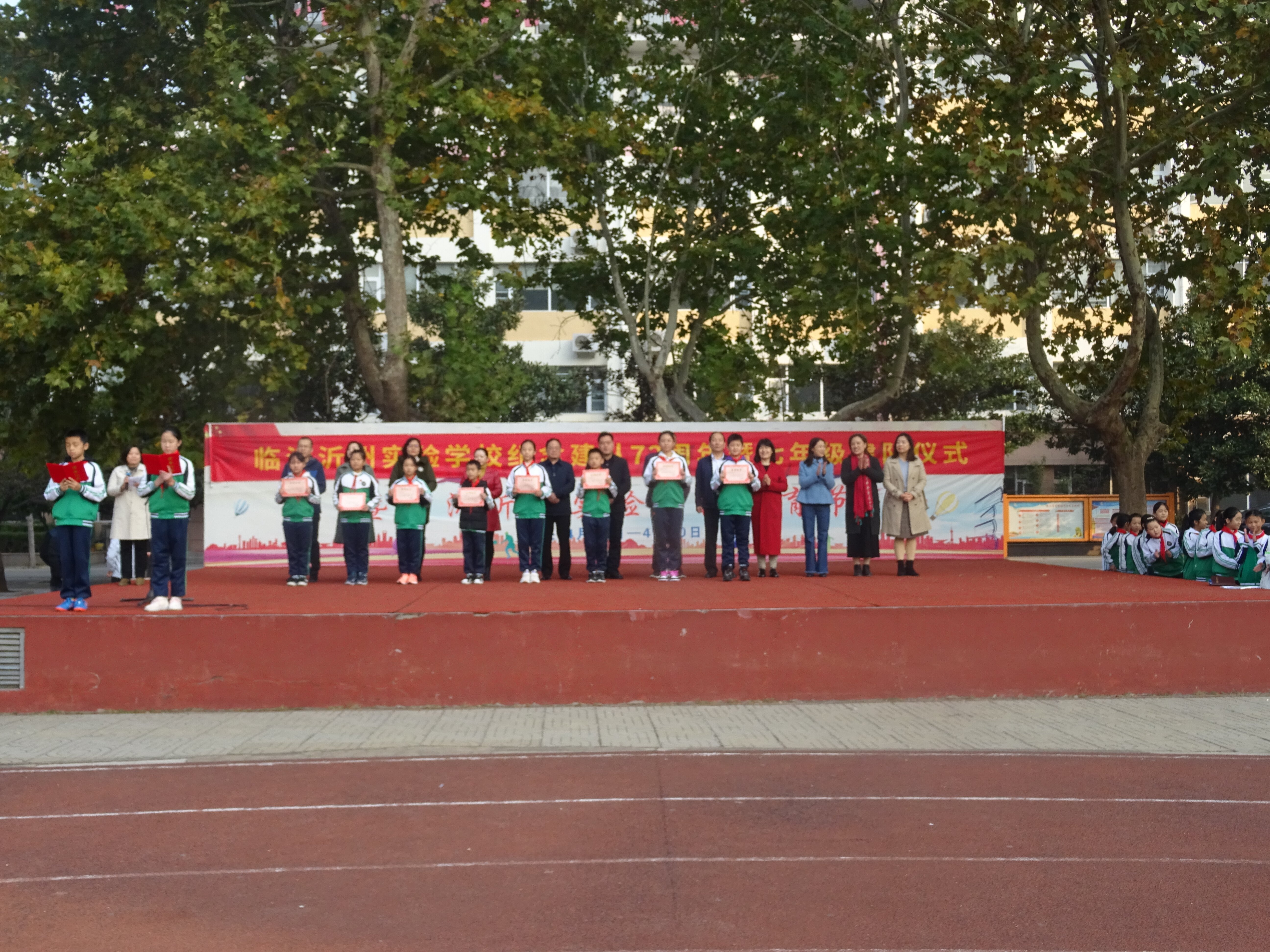 政教處張作萍文任宣讀獲得“沂州文明好少年”“紅領(lǐng)巾一星好少年”學(xué)生名單,受表場(chǎng)同學(xué)依次上臺(tái)接受表彰,這是對(duì)他們講文明、懂禮儀的肯定,同時(shí)也是對(duì)同學(xué)們的激勵(lì)。