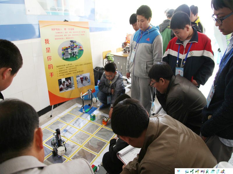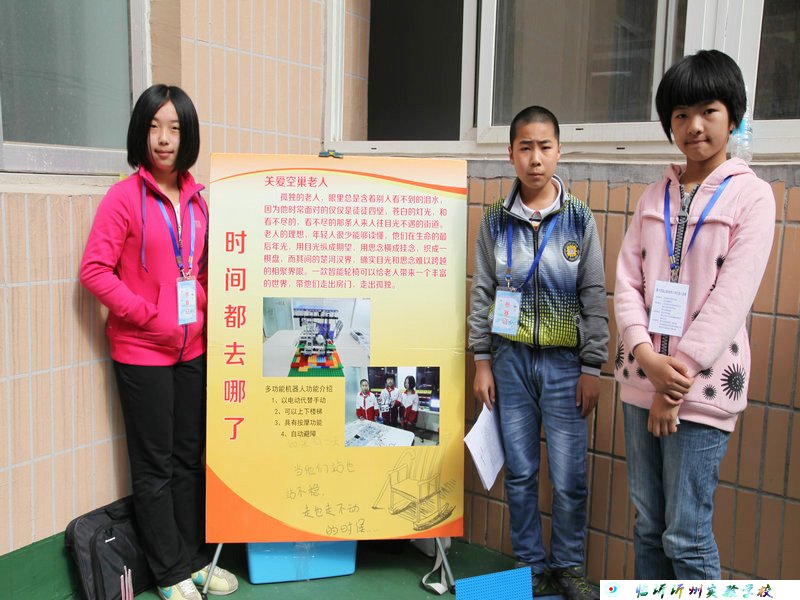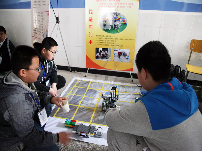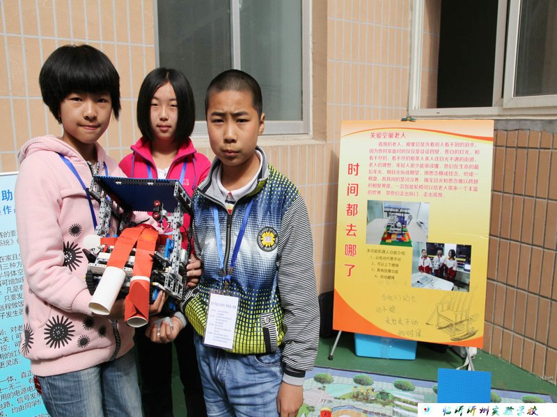 這次創(chuàng)意比賽的主題為“助老助殘機(jī)器人”,小學(xué)組創(chuàng)意為“時間都去哪兒了”,他們設(shè)計的多功能輪椅,具有自動上下樓梯、按摩、自動避障、探測紅綠燈等功能,解決了老年人日常生活中的許多不便;初中組的創(chuàng)意為“我是你的手”他們設(shè)計的機(jī)器人能幫助老年人或殘疾人開拉窗簾、取物、取藥、檢測飲用水的水溫等多種功能。孩子們奇思妙想,將關(guān)愛弱勢群體的理念融入到了機(jī)器人比賽,新穎而獨(dú)特的創(chuàng)意獲得了評委們的一致好評。
