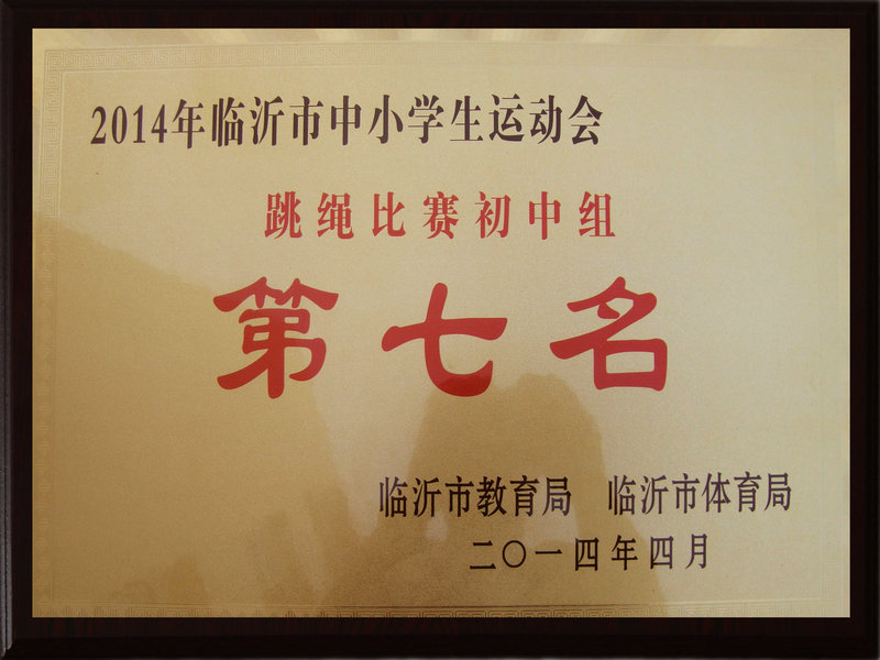 在這屆運(yùn)動會上,臨沂沂州實(shí)驗(yàn)學(xué)校代表團(tuán)在全市23個縣區(qū)、市局直屬學(xué)校代表團(tuán)競爭中獲總名次第十四名、市局直屬學(xué)校第一名的良好成績,獲得總體獎牌五塊,它們是2014年臨沂市中小學(xué)生運(yùn)動會體育道德風(fēng)尚獎、2014年臨沂市中小學(xué)生運(yùn)動會踢毽子比賽小學(xué)組第三名、2014年臨沂市中小學(xué)生運(yùn)動會健身操比賽初中組第四名、2014年臨沂市中小學(xué)生運(yùn)動會踢毽子比賽初中組第四名、2014年臨沂市中小學(xué)生運(yùn)動會跳繩比賽初中組第七名。我校田徑代表隊取得了總分11分的好成績。