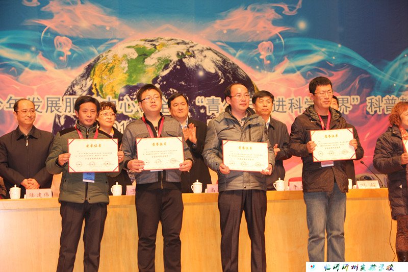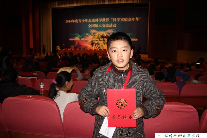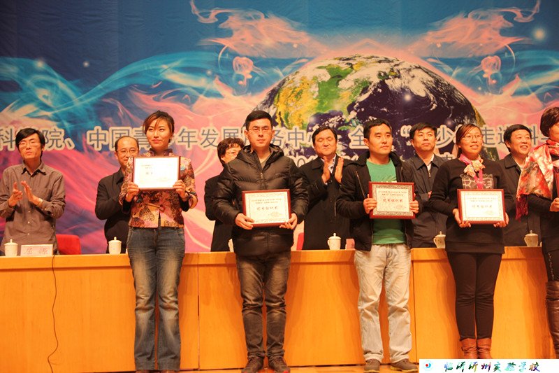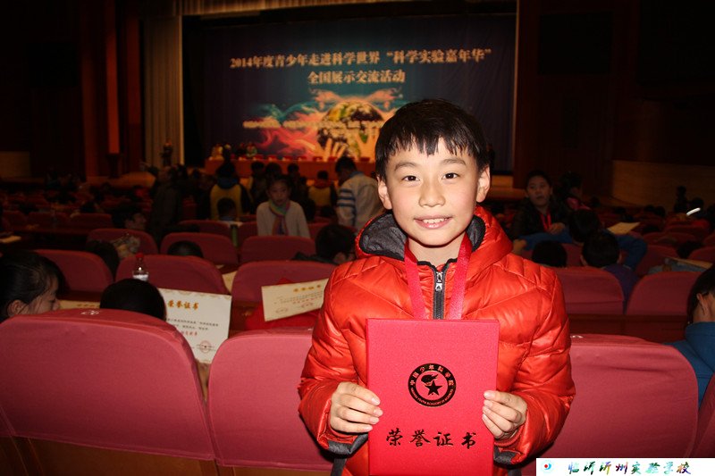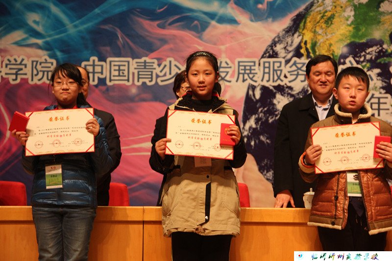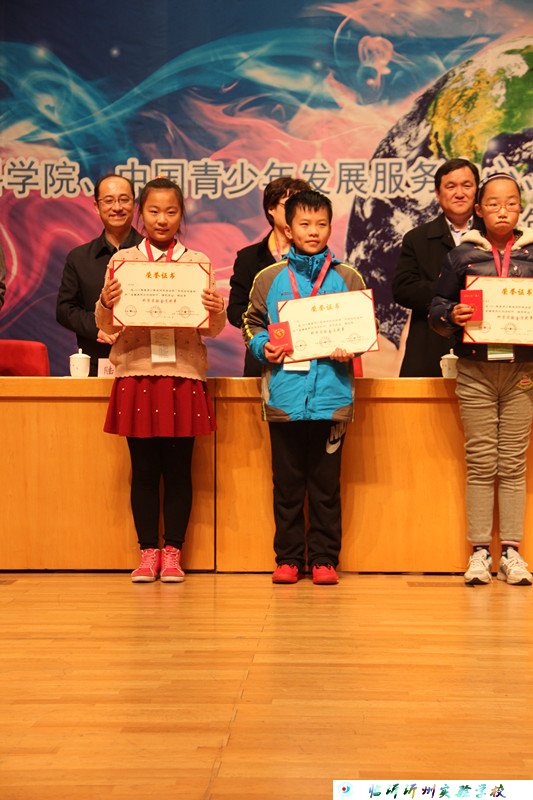12月7日下午,所有參賽選手齊聚天津市大禮堂,參加中國少年科學(xué)院實驗嘉年華的頒獎大會及中國科學(xué)院、中國工程院院士的見面會及與科學(xué)家們的交流活動,我校楊楨明、劉子揚(yáng)、侯昕妤、傅子群同學(xué)分別作為全國十佳、金、銀、銅牌獲得者的代表走上主席臺領(lǐng)獎,當(dāng)他們從科學(xué)家及領(lǐng)導(dǎo)們手中接過金燦燦的獎牌和獲獎證書時,全場響起了熱烈而持久的掌聲。最終,我們參賽的9位同學(xué)獲得了1個全國十佳,4金2銀2銅的優(yōu)異成績,在所有參賽隊中名列前茅,徐雷、李振勇兩位老師榮獲“全國優(yōu)秀輔導(dǎo)老師”稱號,學(xué)校榮獲“全國優(yōu)秀組織獎”殊榮。這也是我們學(xué)校一貫注重學(xué)生的科技實踐活動結(jié)出的碩果。