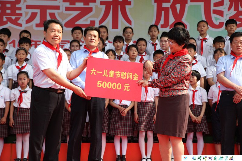 6月1日上午,沂州實驗學校的校園里洋溢著節(jié)日的喜慶氣氛,一年一度的校園藝術節(jié)暨慶“六一”文藝演出隆重舉行。臨沂市政府副市長趙愛華,臨沂市政府督查室主任秦鴻偉,臨沂市教育局黨委書記、局長祖旭東,臨沂市教育局黨委委員、臨沂二中黨委書記陳景山,臨沂市教育局工會主席孫杰一行到臨沂沂州實驗學校參加“六一”兒童節(jié)慶?;顒?,給孩子們送上了節(jié)日祝福和5萬元慰問金。