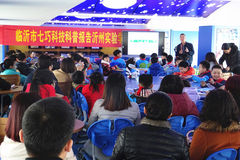 3月2日上午,臨沂市“七巧科技”系列活動科普報告在沂州實驗學校科技樓四樓舉行。來自市直、蘭山、羅莊等各中小學的科技輔導教師,沂州實驗學校七巧科技俱樂部師生及家長100余人參加了培訓。七巧科技全國組委會執(zhí)行主任、七巧科技教育專家樓珠貴教授蒞臨現(xiàn)場作精彩的輔導報告。