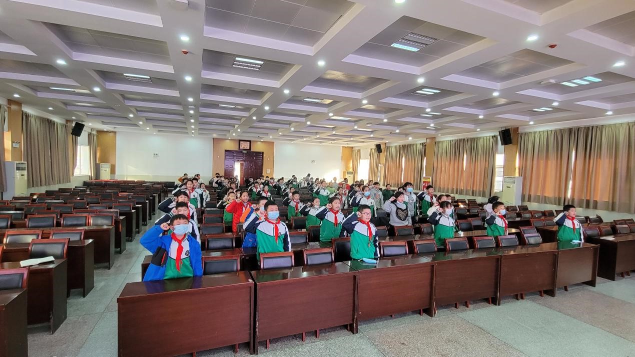 小記者團(tuán)團(tuán)長趙義,帶領(lǐng)沂州實(shí)驗(yàn)學(xué)校的小記者們重溫了入團(tuán)的誓詞。小記者們精神飽滿,宣誓鏗鏘有力。