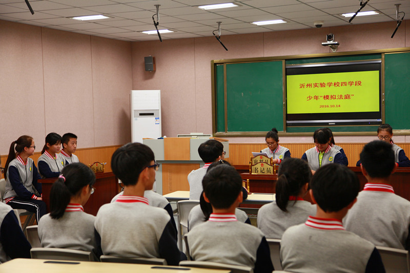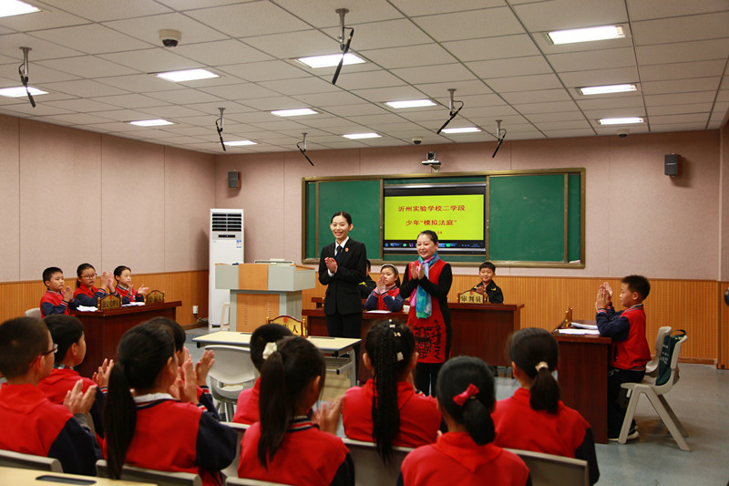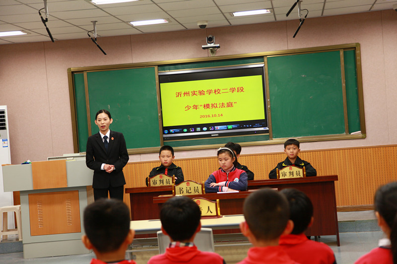 10月14日下午,我校二、三、四學(xué)段在錄播室舉行了“模擬法庭”庭審活動。我們邀請臨沂市蘭山區(qū)人民法院少審?fù)ヌK雅楠法官現(xiàn)場指導(dǎo)。