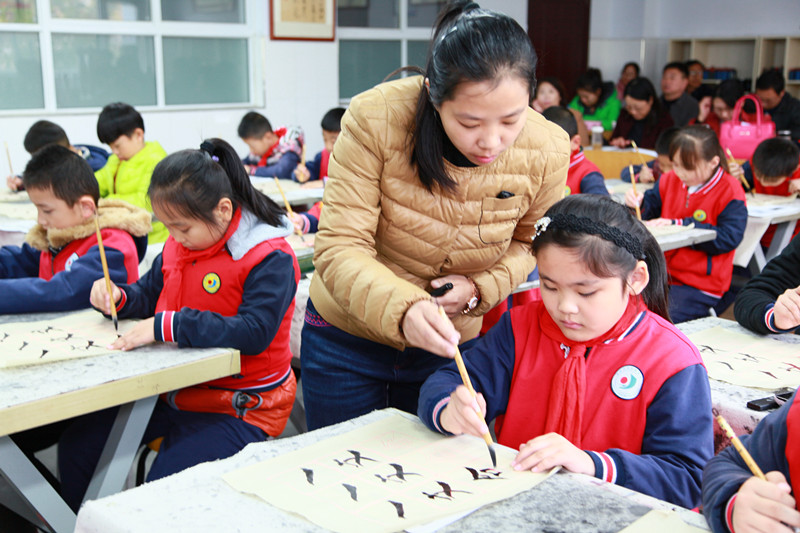 賽前,每位老師在各自團隊的幫助下都做了非常精心的準備。課堂上,老師們或唱,或演,或示范,從課堂導入、學生的坐姿、握筆姿勢的把握,到書寫要領的引導,無不細致入微。課堂設計更是環(huán)環(huán)相扣,充分體現(xiàn)書法的學科特點,從書法故事中深入挖掘教學內容所蘊涵的德育資源,把育人目標有機滲透到教學過程之中,為我們呈現(xiàn)了一節(jié)節(jié)精彩的書法德育課。