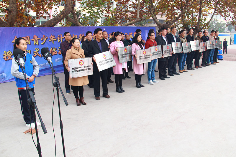 開幕式上,首先由中國青少年發(fā)展服務中心科普部部長、中國少年科學院副秘書長屈源講話并宣讀全國青少年計算機科技創(chuàng)新實踐教育示范基地學校名單,并對 13所教育示范基地的學校進行了授牌儀式。