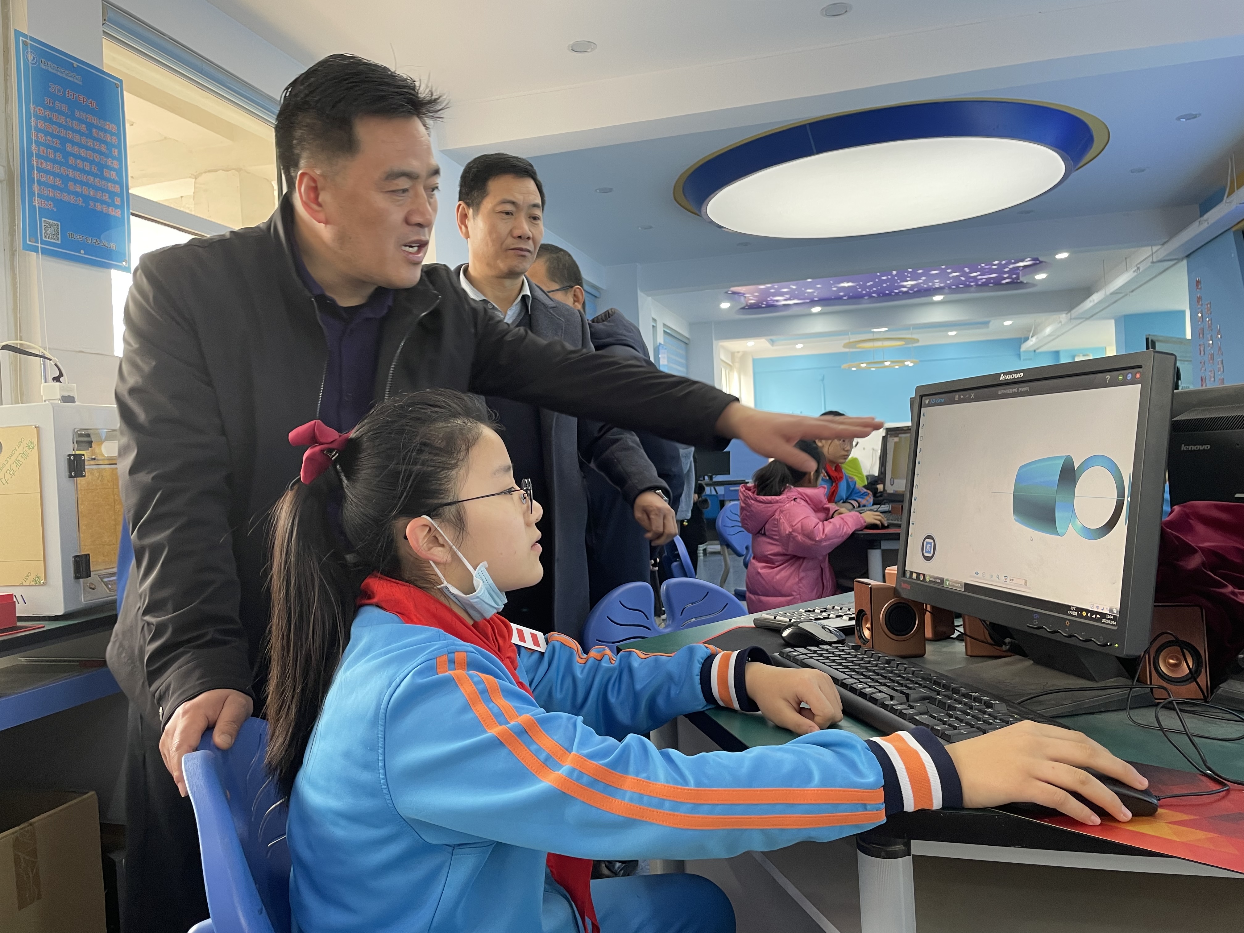 與會(huì)人員在徐校長(zhǎng)的帶領(lǐng)下還參觀了我校的少年科學(xué)院,實(shí)地觀摩了我校3D打印、機(jī)器人、人工智能編程、航模俱樂(lè)部等特色科技課程,學(xué)生們出色的表現(xiàn)給大家留下了深刻印象;看到少科院的榮譽(yù)墻,大家對(duì)我校銀河之星少科院所取得的成績(jī)連連稱(chēng)贊。