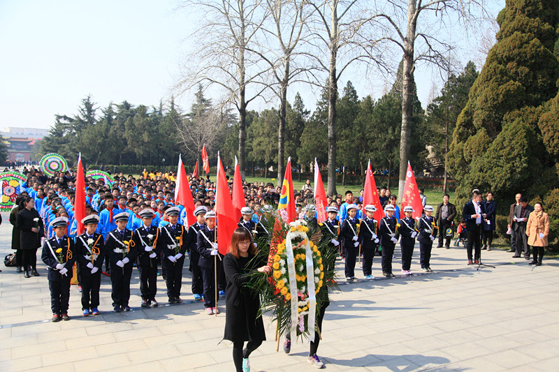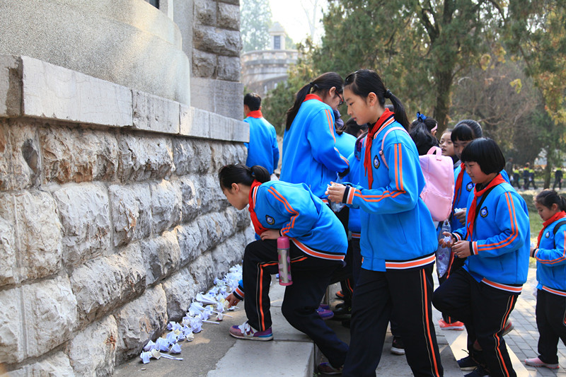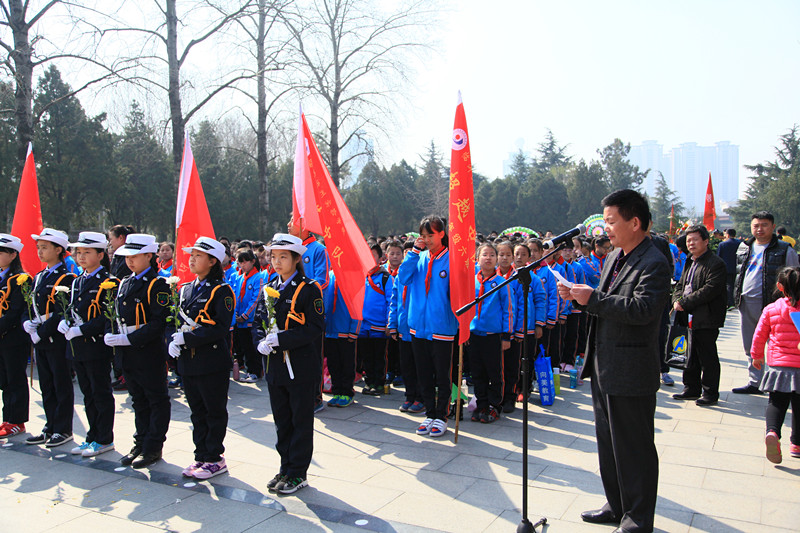 烈士陵園祭奠英烈。紀念塔前,老師代表首先向革命烈士紀念塔敬獻花圈。然后全體師生默哀三分鐘,表達對英烈的懷念之情。接著由蘇媚娟主任帶領全體少先隊員宣誓,由王愛永副校長做主題講話,他號召大家繼承烈士遺志,努力學習,勇挑重擔。最后,大家瞻仰了烈士墓,將親手制作的小白花敬獻在墓前。隨后,大家又來到沂蒙革命烈士紀念館,觀看了革命圖片、實物、雕塑、場景等。