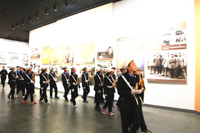 4月1日上午,全體師生在王愛永副校長的帶領下,徒步前往華東革命