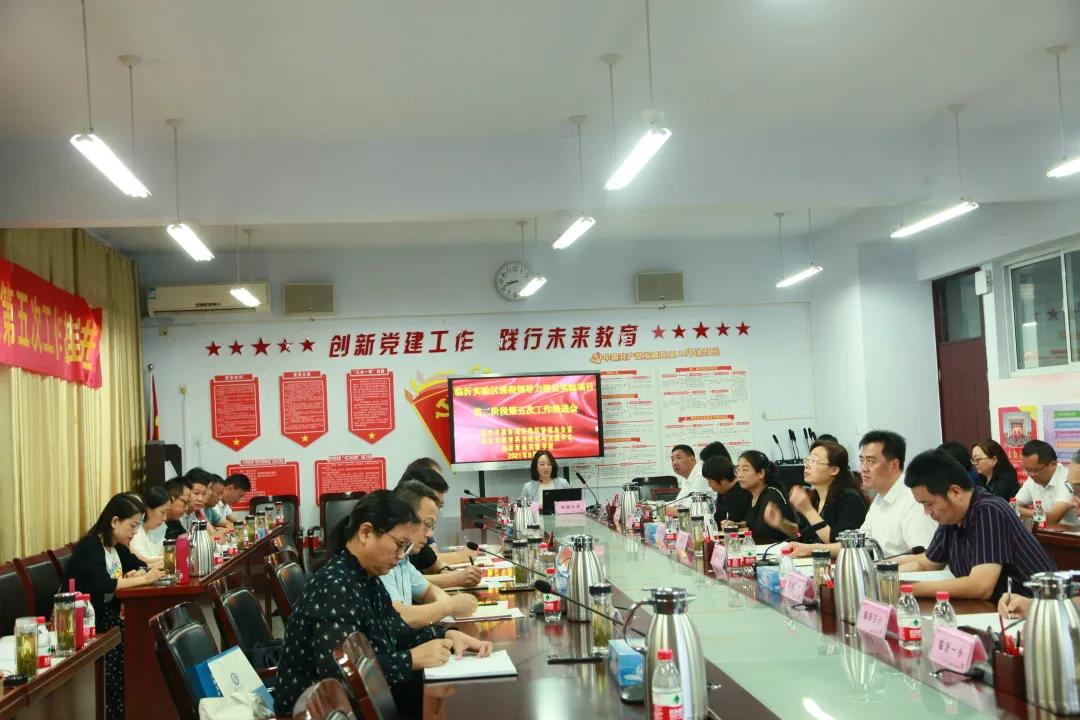 為進一步深化課程改革,推動學校課程領(lǐng)導力建設(shè),便于實驗學校交流探討課程領(lǐng)導力建設(shè)實驗項目的階段性成果,2021年9月7日,臨沂市課程領(lǐng)導力建設(shè)實驗項目第二階段第五次推進會在臨沂沂州實驗學校召開,本次推進會,采用線下+線上的方式進行,出席本次推進會的領(lǐng)導、專家有教育部課程教材發(fā)展中心課程處副處長王杉杉同志,教育部課程教材發(fā)展中心課程處干部、臨沂實驗區(qū)聯(lián)系人孟璨同志,華東師范大學胡惠閩教授、朱偉強教授,臨沂市教育科學與發(fā)展中心主任李楠同志,臨沂實驗區(qū)課改辦副主任朱成廣同志,臨沂市教育科學與發(fā)展中心小學科副科長、學校課程領(lǐng)導力建設(shè)項目負責人徐文達同志,臨沂市教育科學與發(fā)展中心教研員王效華同志。參加本次會議的還有臨沂實驗區(qū)10所實驗學校的校長、實驗教師等,本次會議由徐文達主持。