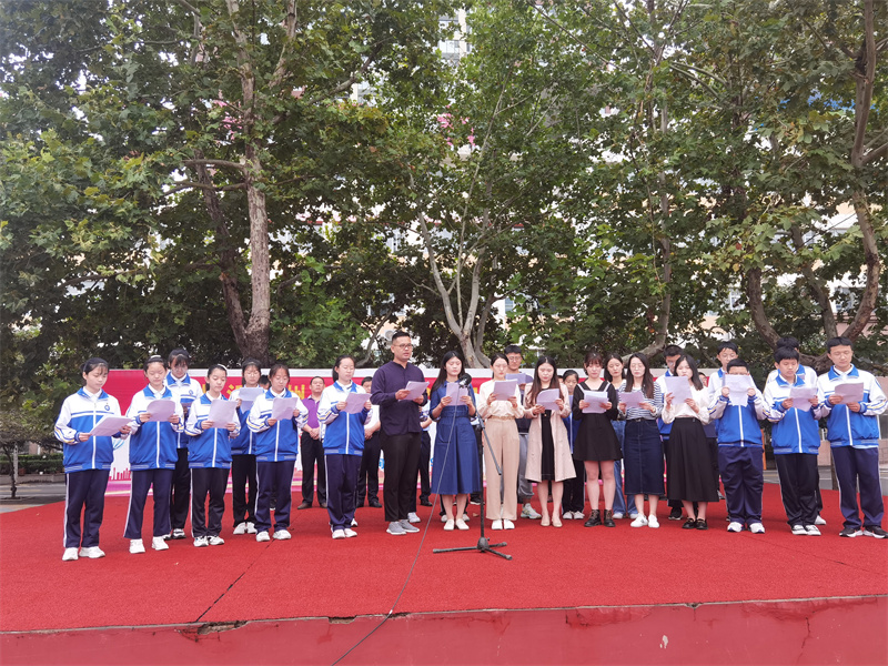 盛世繁華空前,愛國深情不減。不忘來時的路,才能走好前行的路!為促進同學們更好的了解百年前那風雨如晦的歲月,中學部青年教師與學生代表集體朗誦李大釗先生的《青春》,百年前革命先烈的泣血吶喊,如今伴隨著師生的激情朗誦,再一次回蕩在祖國的大地之上:“青年循蹈乎此,進前而勿顧后,背黑暗而向光明,為世界進文明,為人類造幸福!”百年前清和明媚之際,國,危在旦夕,百年后,層林盡染之時,國,舉世無雙。在先輩的諄諄教誨中,全體師生誓以青春之姿,勇?lián)笕危蝗枋姑?/p>