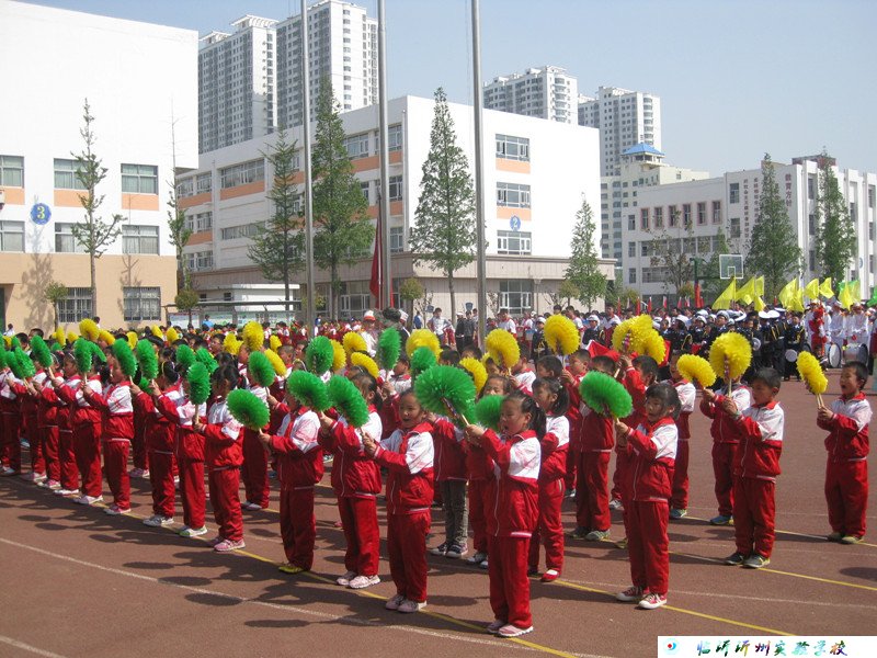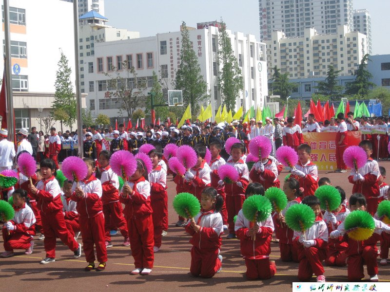 下午1:40,開幕式在激昂的鼓樂聲中拉開帷幕。國旗隊、標語隊、會徽隊、軍樂隊、小交警隊、花束隊、彩旗隊、教練員隊、各班運動員方隊聲勢浩大、鼓樂喧天,氣氛熱烈、十分壯觀。各班隊列展示,形式新穎,變化多樣,精彩紛呈。各年級廣播操展示,動作整齊,整體劃一,各具特色。開幕式由王愛永副校長主持,王自祥校長致開幕詞。