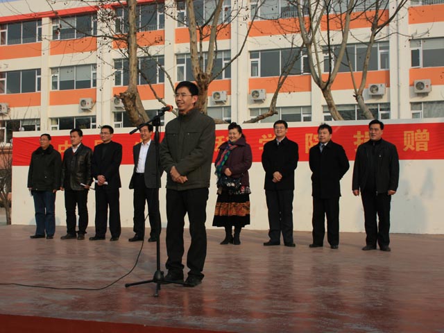 杜局長在儀式上做了重要講話。中國少年科學(xué)院在我校舉行科普圖書、儀器捐贈(zèng)儀式,這是我市教育事業(yè)中的一件大事,是我校教學(xué)工作中的一件喜事。這次捐贈(zèng)活動(dòng),意義重大,給同學(xué)們帶來的不僅是物質(zhì)上的幫助,更重要的是從精神上給予了巨大鼓舞,將伴隨同學(xué)們快樂學(xué)習(xí)、健康成長。杜局長代表市教育局向中國少年科學(xué)院給予的關(guān)心和支持表示崇高的敬意!向遠(yuǎn)道而來的各位領(lǐng)導(dǎo)表示誠摯歡迎和感謝!