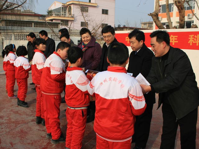 張秘書長指出,這次捐贈(zèng)的科技圖書和儀器,目的是讓廣大中小學(xué)生多讀書、多實(shí)驗(yàn),多了解和掌握科普知識,在讀書和實(shí)踐中提高科技創(chuàng)新技能,為今后學(xué)習(xí)和創(chuàng)造打下堅(jiān)實(shí)的基礎(chǔ),讓越來越多的學(xué)生體驗(yàn)科學(xué)的無窮魅力。讓創(chuàng)新之夢從這里起飛,讓孩子們的童心乘著創(chuàng)新的翅膀飛翔。相信我校將以培養(yǎng)少年兒童創(chuàng)新精神和實(shí)踐能力為重點(diǎn),把少年科學(xué)院辦出特色、辦出品牌,為國家培養(yǎng)一批批璀璨的科技之星。