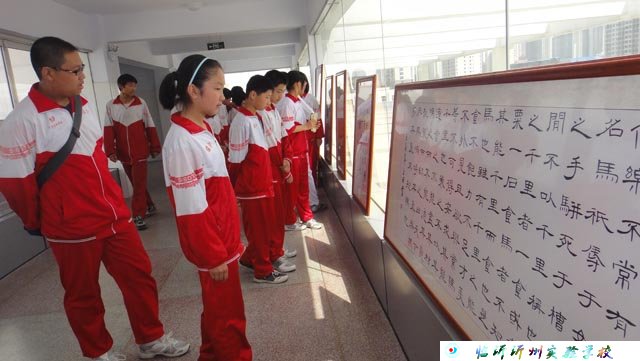 依據(jù)“以書法普及為基礎(chǔ),以培養(yǎng)特長為發(fā)展”的總體原則,為指導全校漢字書寫有序、規(guī)范進行,我校成立了專門的書法教研室,對全校的漢字書寫有針對性的進行指導。在書法普及教育的基礎(chǔ)上,成立了學生和老師的書法活動社團,以社團活動促進書法教育的提高,書法社團定期舉辦不同規(guī)模的師生書法藝術(shù)展覽,積極參加各種層次的書法比賽活動,并取得了驕人的成績。